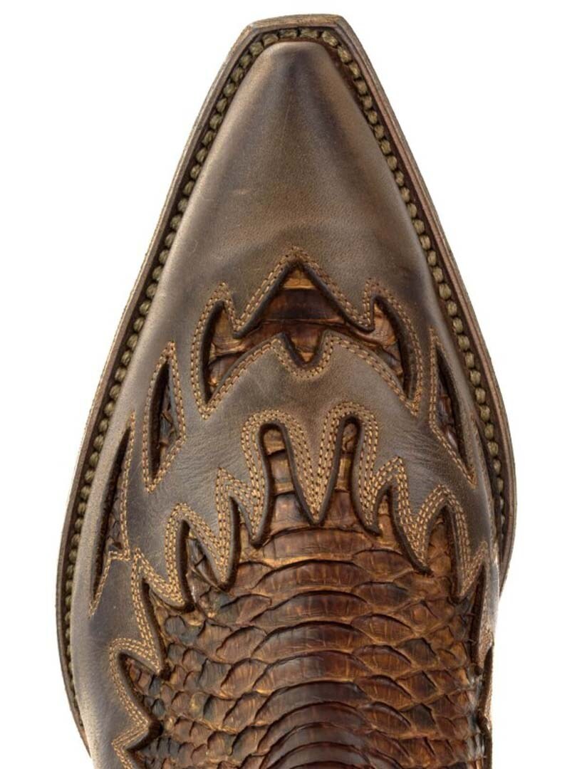 Mayura 12 cowboyboots w postarzanej brązowej skórze i prawdziwej skórze pytona to ekskluzywne botki z prawdziwym westernowym klimatem.