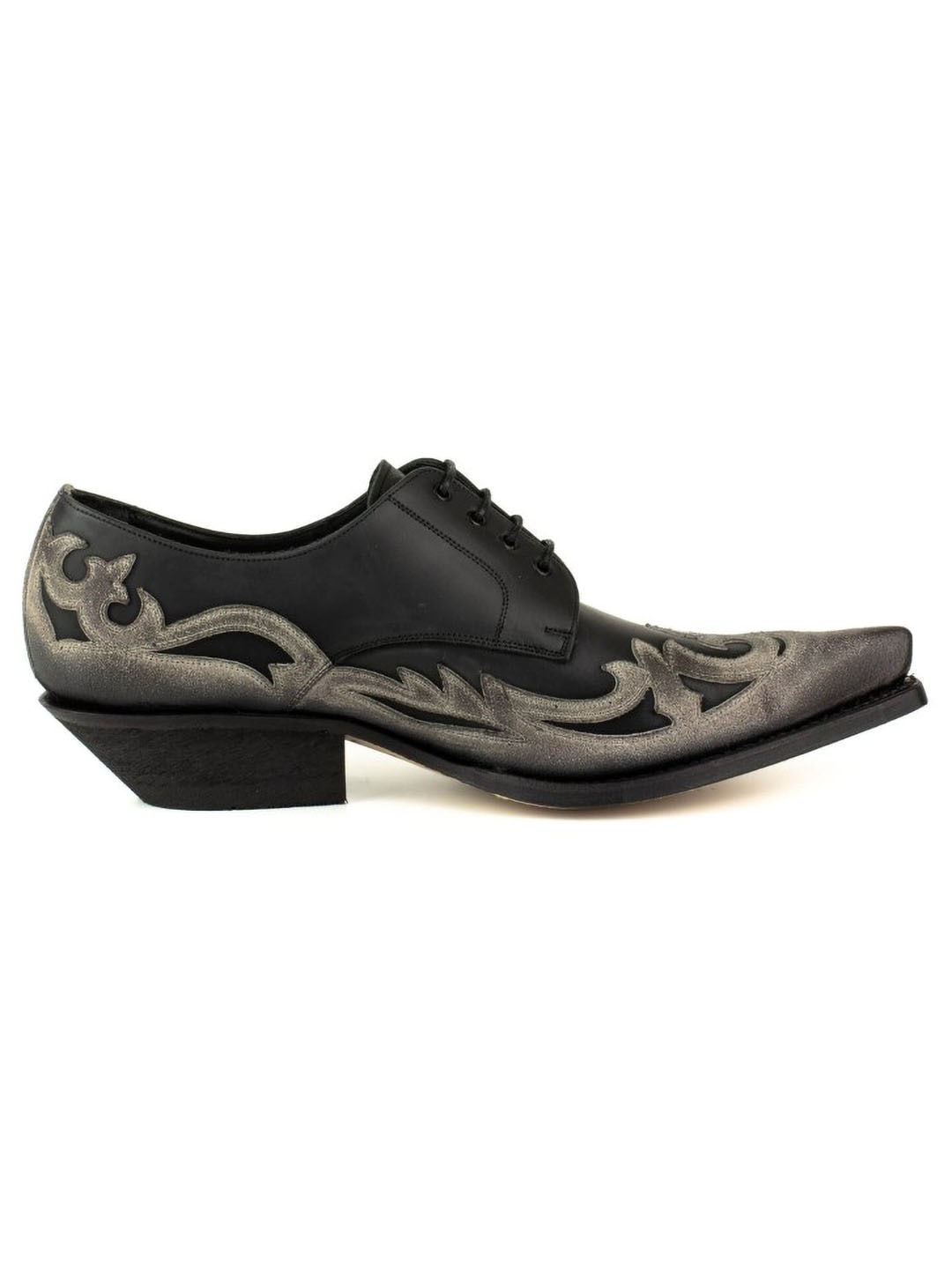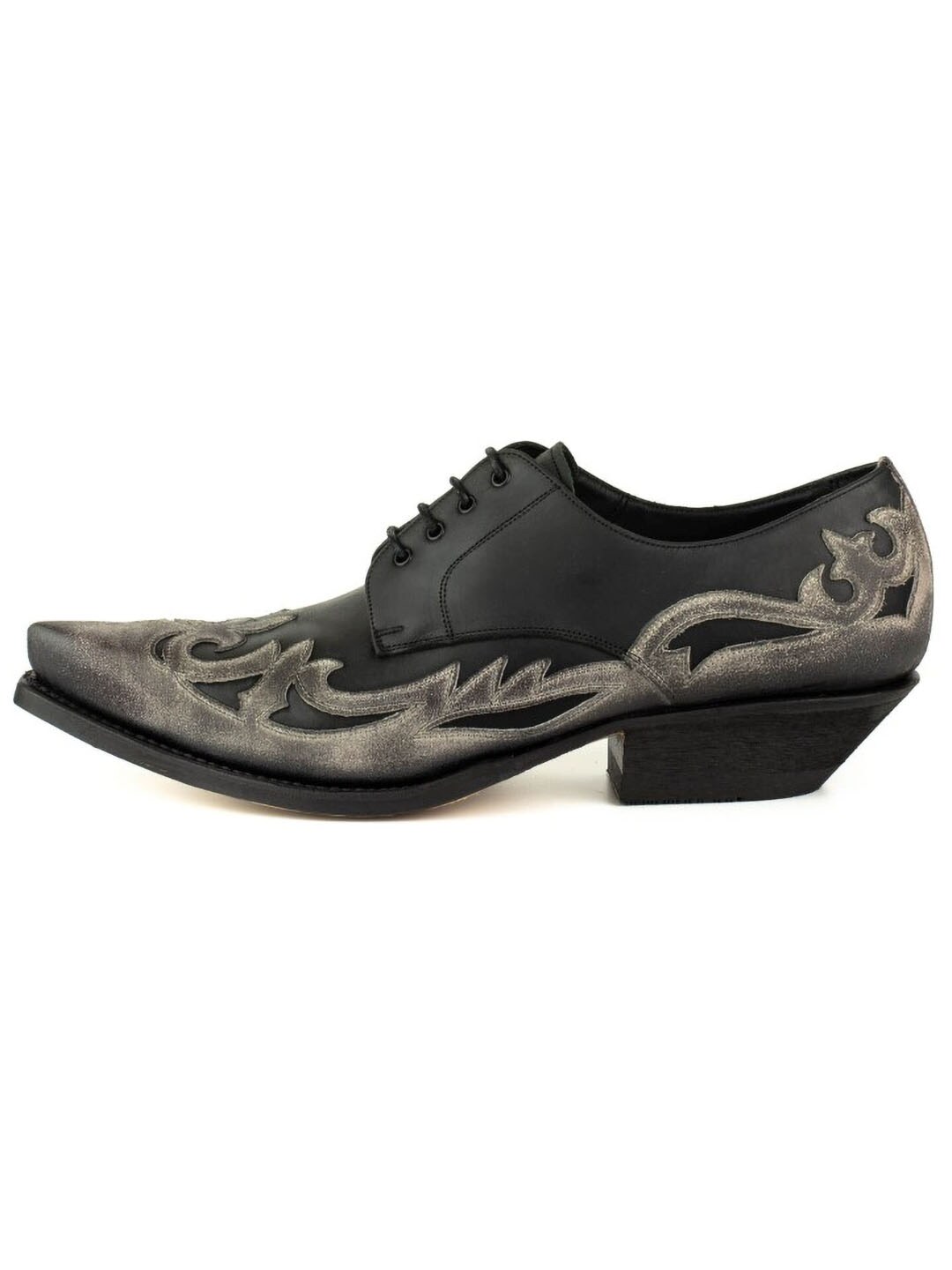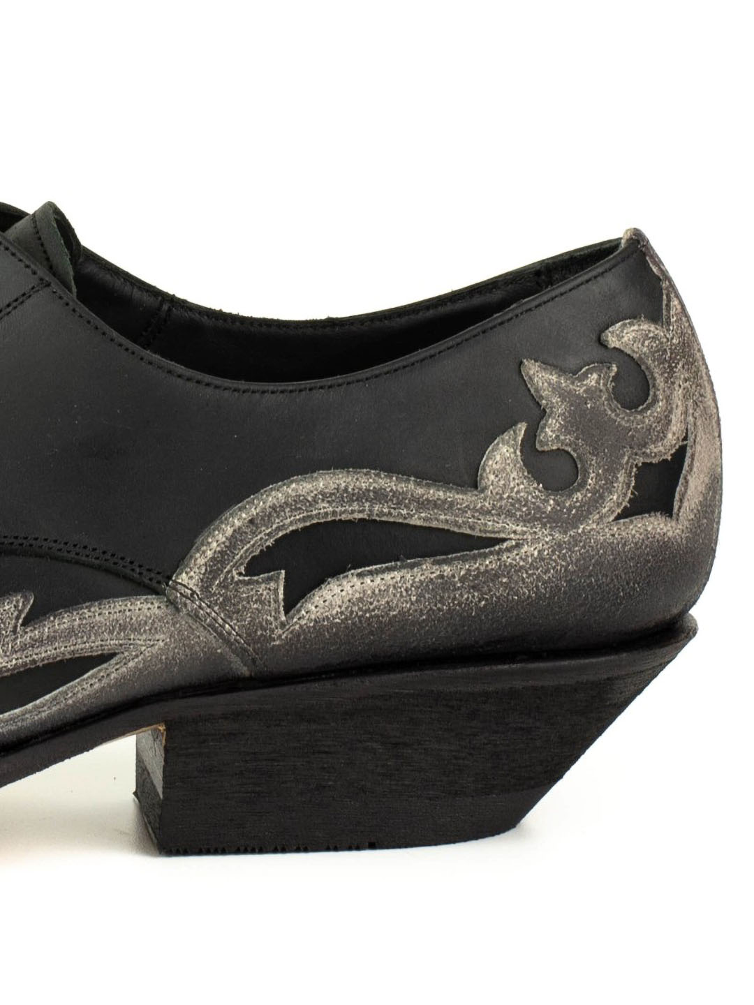 Unikatowe obuwie wykonane z rustykalnej, postarzanej skóry w odcieniach czerni i szarości, tworzących naturalny efekt vintage. Profilowany kształt oraz wycięte detale nadają im wyraźny, westernowy charakter. Podeszwa wykonana z hiszpańskiej skóry cielęcej, a konstrukcja ręcznie wykonana w systemie Goodyear Welt – jednej z najbardziej trwałych i prestiżowych metod produkcji obuwia. Efekt to but o imponującej trwałości, stabilności i komforcie, dopasowujący się do stopy z czasem. Idealny wybór dla osób ceniących solidność, elegancję i charakter!