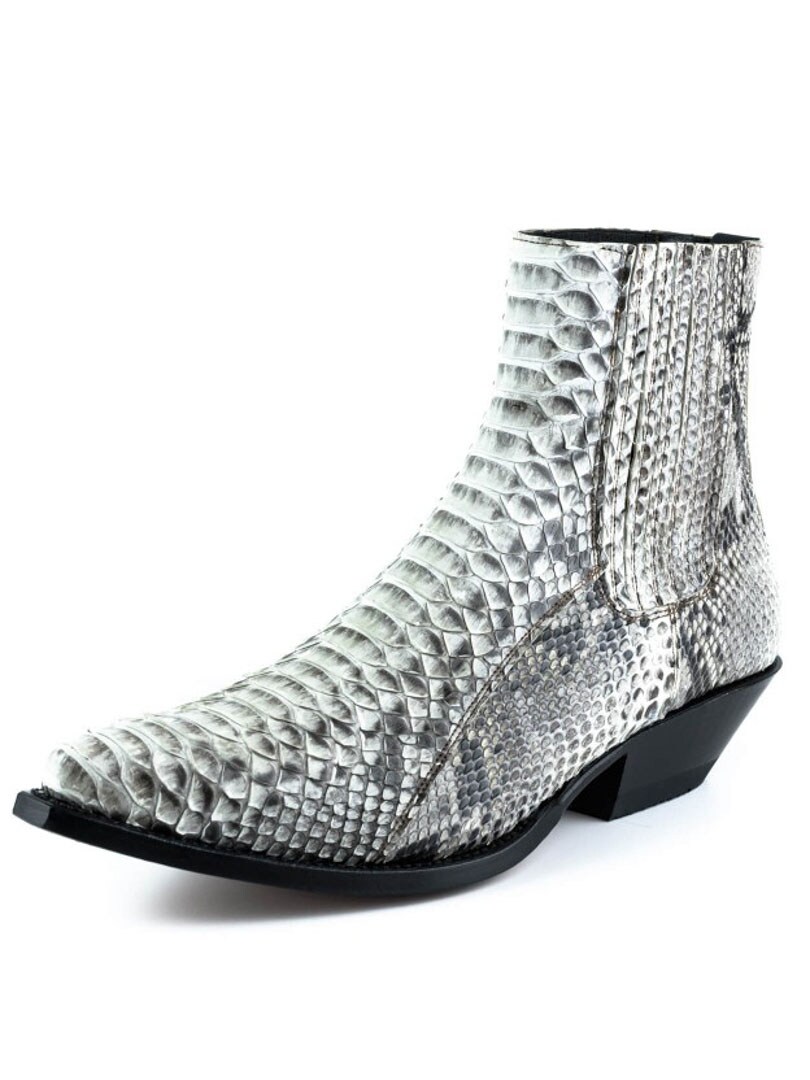 Mayura 2575 Harrier M-50 botki w całości z białej skóry pytona to eleganckie, ręcznie robione kozaki o ekskluzywnym profilu.