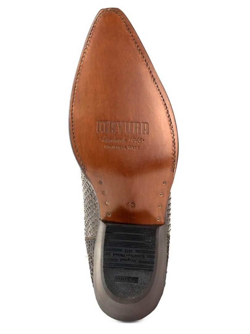 Te wyrafinowane botki są wykonane z prawdziwej skóry pytona i wyściełane miękką skórą cielęcą, aby zapewnić komfort przy każdym kroku. Projekt został stworzony, aby nadać stopie i kostce smukłą sylwetkę, co czyni je idealnym wyborem do noszenia ze wąskimi spodniami. Dzięki elastycznym panelom bocznym są łatwe do zakładania i zdejmowania, a konstrukcja Goodyear z skórzaną podeszwą gwarantuje doskonałą trwałość. To buty dla tych, którzy szukają połączenia luksusowych materiałów i najwyższej klasy rzemiosła.