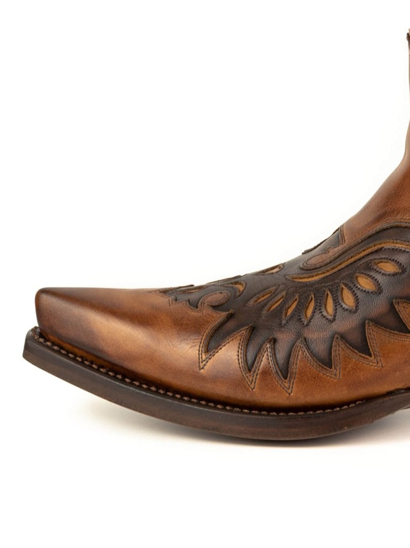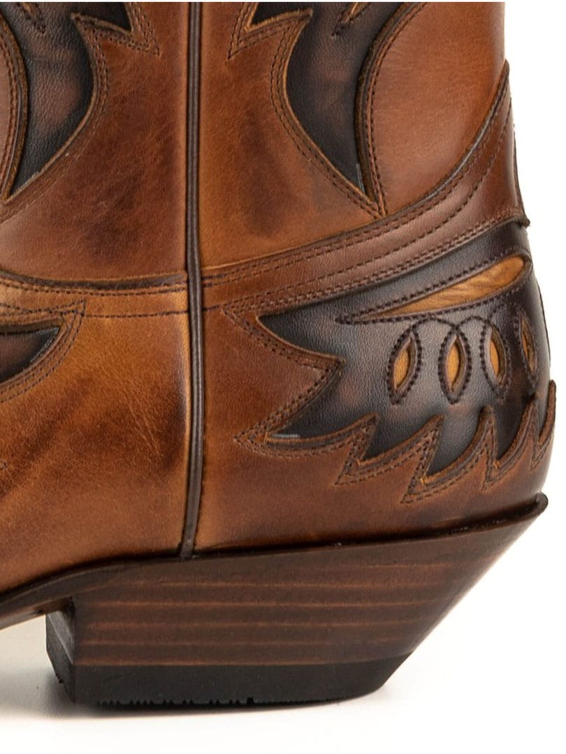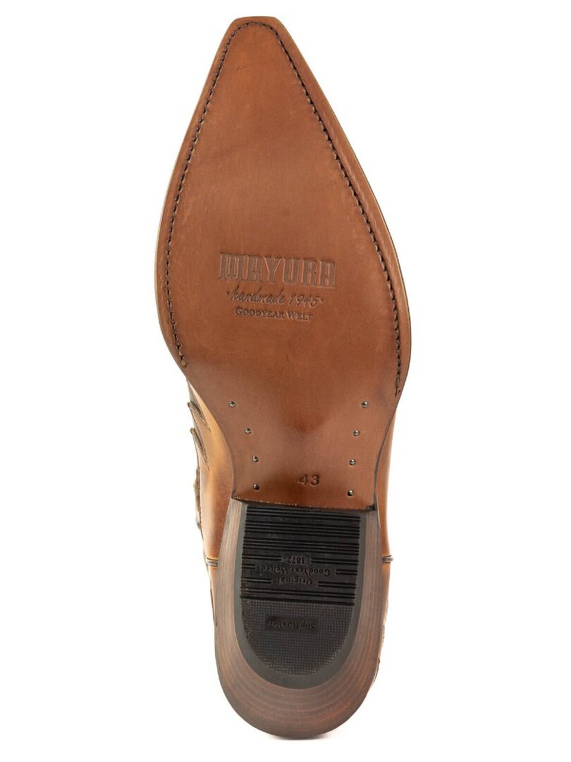 Buty wykonane są z naturalnej skóry krowiej i wykończone ręcznie nadaną vintage-fakturą, która tworzy unikalną, brązową grę kolorów. Imponujący motyw orła podkreśla mocny charakter obuwia i sprawia, że stanowi ono prawdziwy wyróżnik stylu. Kowbojki są ręcznie wykonywane przez doświadczonych rzemieślników i zbudowane w oparciu o cenioną konstrukcję Goodyear Welt, gwarantującą trwałość, stabilność i wyjątkowy komfort. Idealny wybór dla wszystkich miłośników wysokiej jakości obuwia z charakterem!