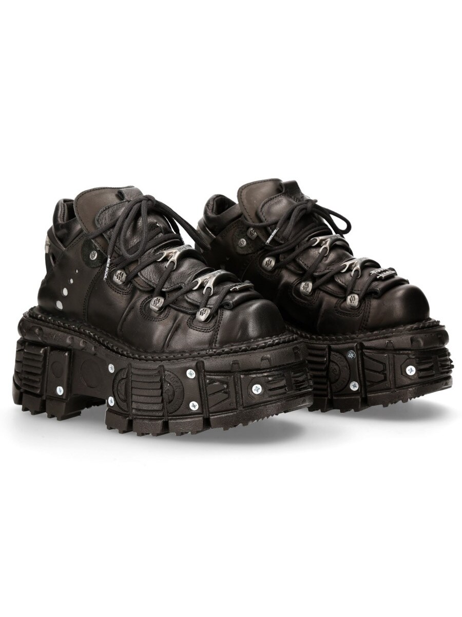 Kultowy model pochodzący z kolekcji METALLIC, wykonany z naturalnej skóry o metalicznym połysku. Inspirowany estetyką gothic-punk, zachwyca solidnym, rockowym designem, idealnym dla odważnych dusz. Sznurowane zapięcie wzbogacone jest srebrnymi akcentami, a gruba, aż 5 cm podeszwa oraz obcas o wysokości około 7 cm nadają butom autentycznej monumentalności.