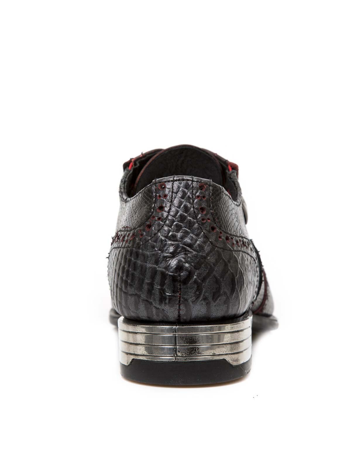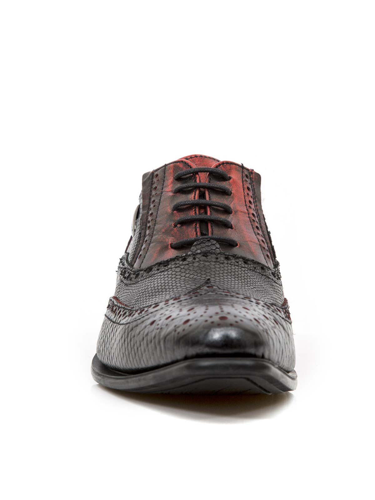 Fińskie sznurowane buty, które wyróżniają się z tłumu. Skóra w stylowy wzór gadów z czerwonymi elementami i ozdobne metalowe detale. Wyjątkowe buty dostępne tylko w kilku egzemplarzach!