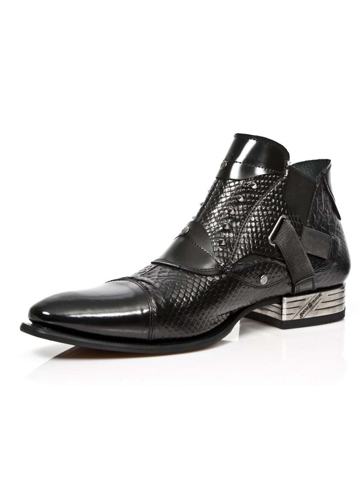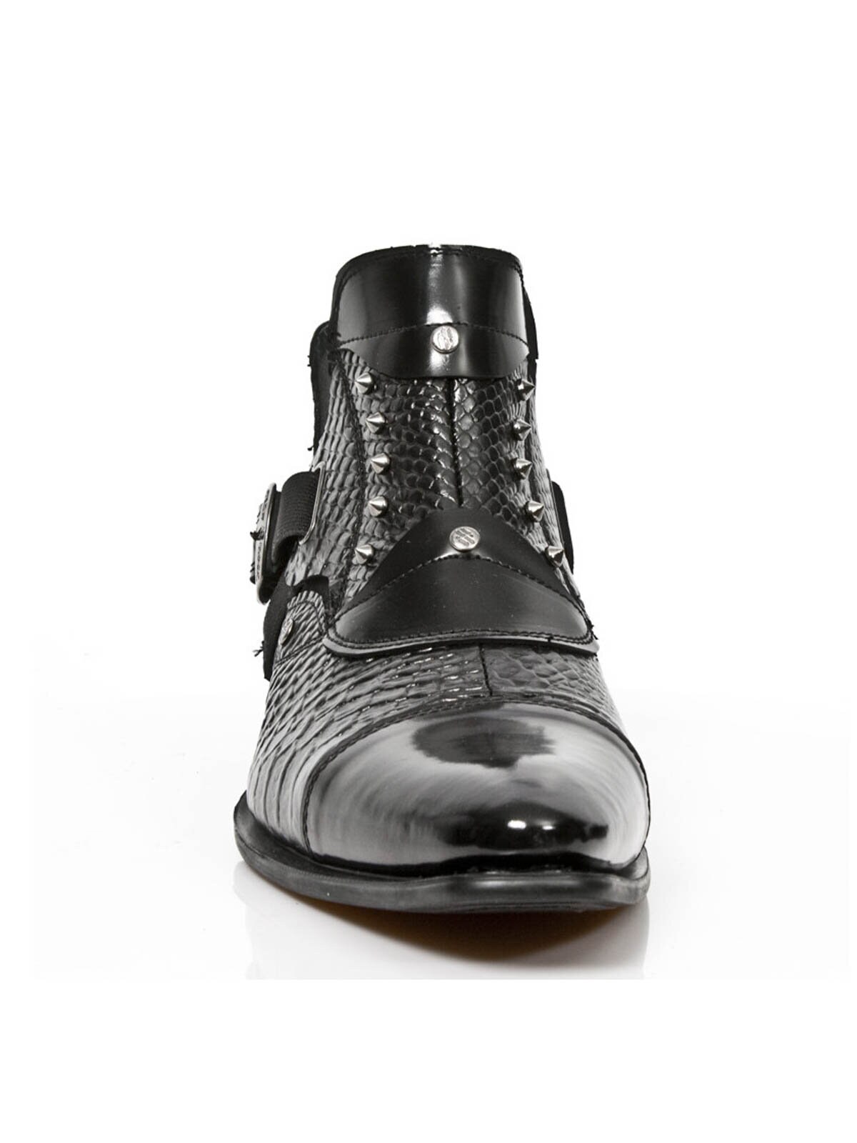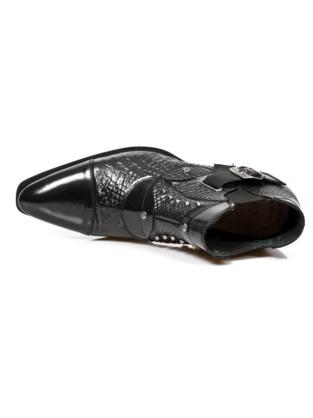 Czarne buty z prawdziwej skóry ze stylowym wzorem i cholewką do kostki. Ozdobne detale w postaci nitów i elastycznych pasków z metalową klamrą. Gumka przy otworze cholewki po obu stronach, która ułatwia zakładanie. Te wyjątkowe buty dostępne są w limitowanej edycji!