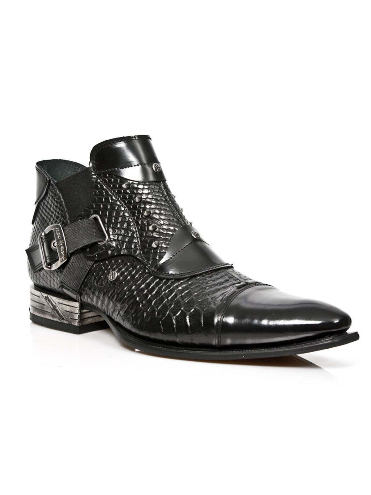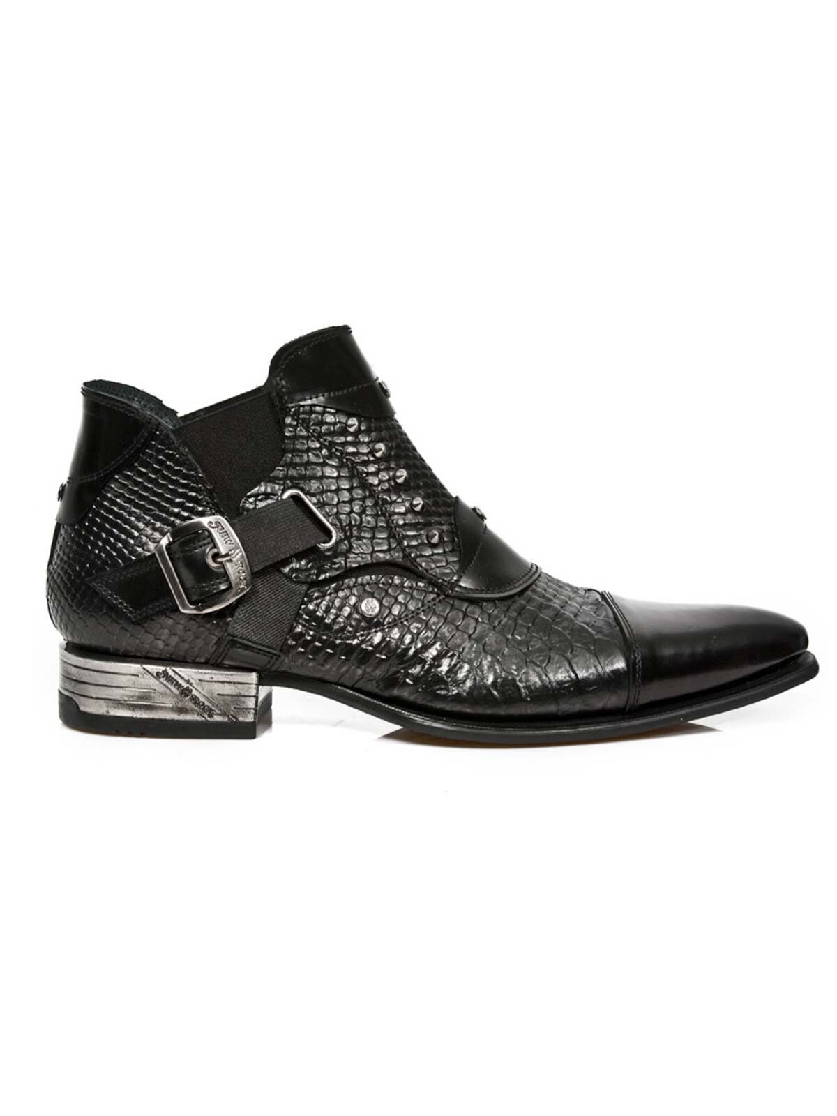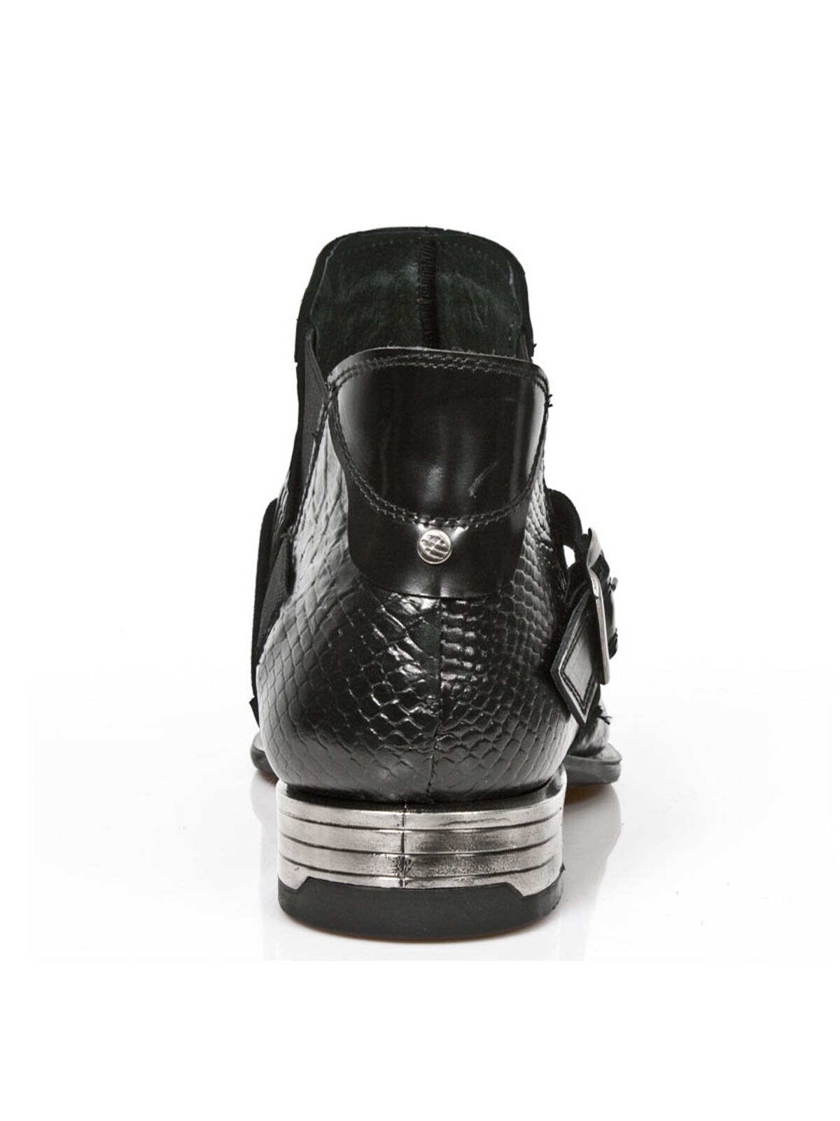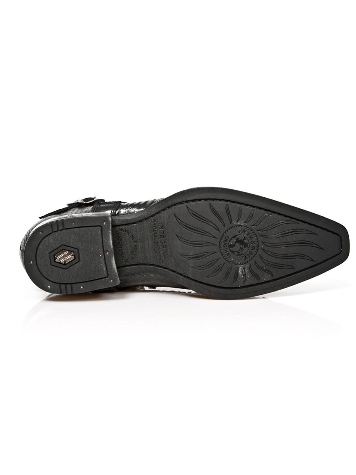 Czarne buty z prawdziwej skóry ze stylowym wzorem i cholewką do kostki. Ozdobne detale w postaci nitów i elastycznych pasków z metalową klamrą. Gumka przy otworze cholewki po obu stronach, która ułatwia zakładanie. Te wyjątkowe buty dostępne są w limitowanej edycji!