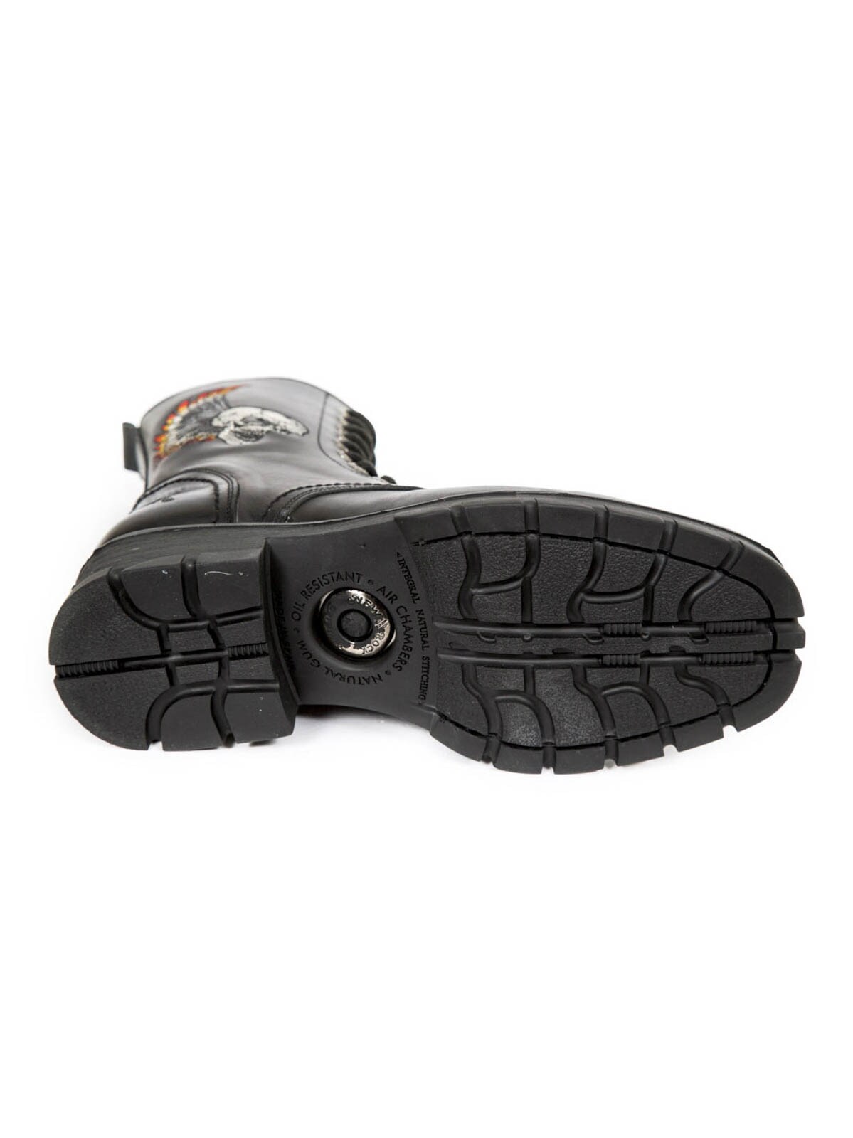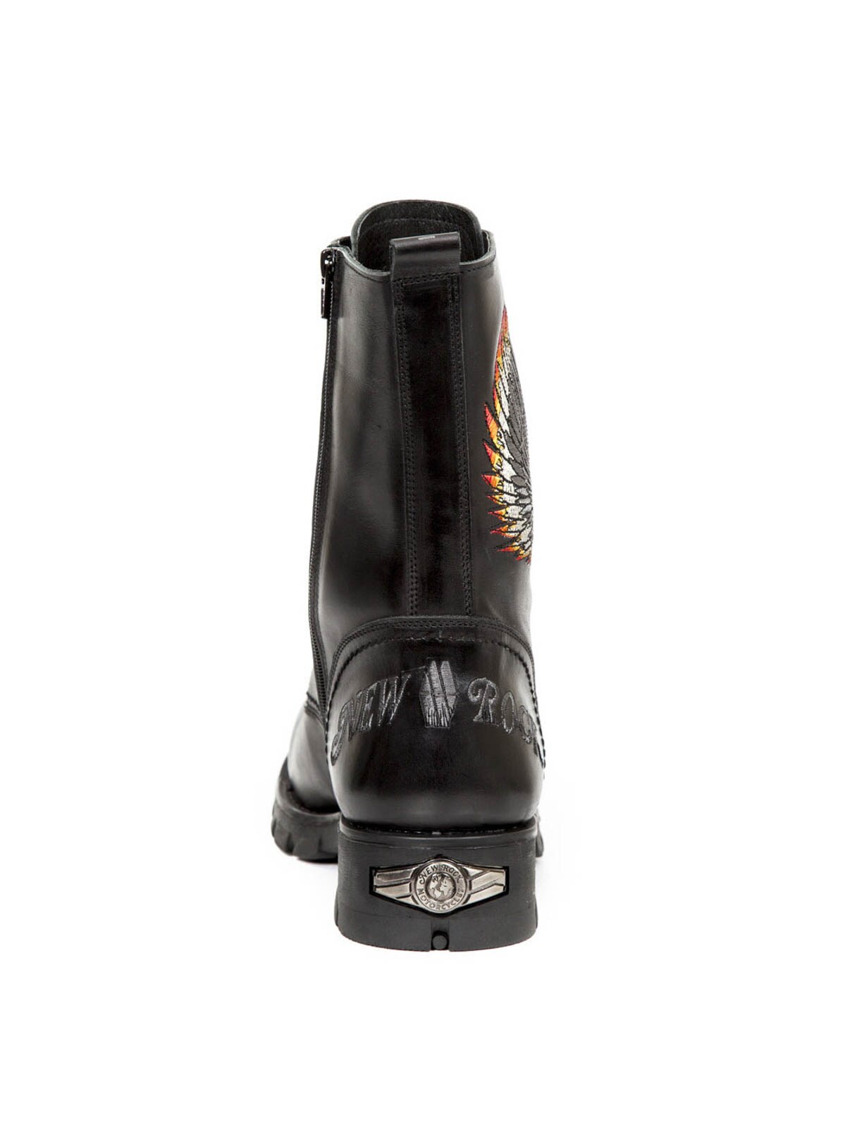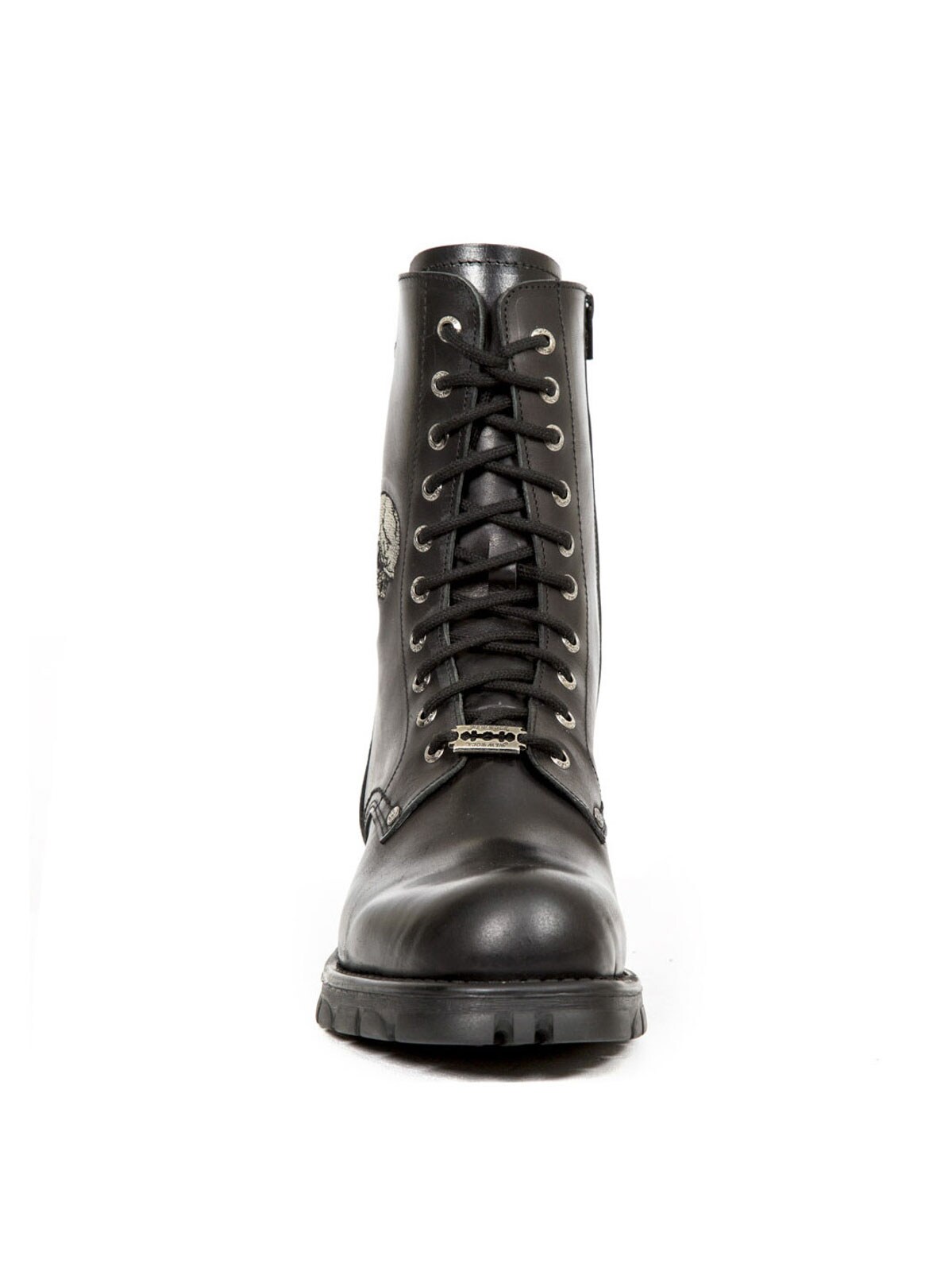 Czarne buty z haftowanym wzorem uskrzydlonej czaszki. Posiadają wysoką cholewkę ze sznurowadłami oraz zamek błyskawiczny po wewnętrznej stronie, który ułatwia ich zakładanie i zdejmowanie. Wykonane ręcznie z prawdziwej skóry i dostępne w limitowanych edycjach, dzięki czemu każdy but jest wyjątkowy.