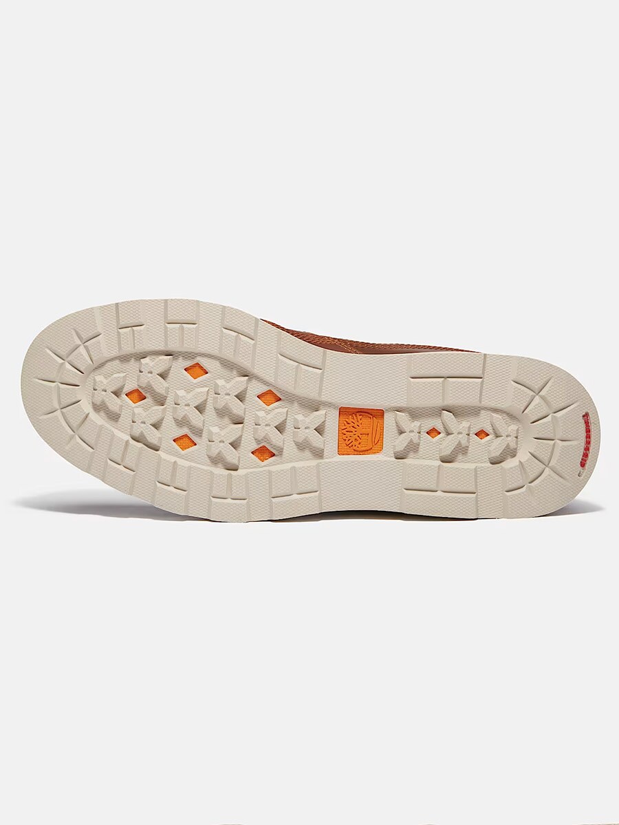 Ten brązowy but łączy ponadczasowy wygląd z innowacyjnymi materiałami, zapewniając optymalną wydajność i trwałość. Buty są wykonane z wodoodpornej skóry i posiadają wewnętrzną wodoodporną, oddychającą membranę, która utrzymuje stopy suche. Wkładka z pianki komfortowej OrthoLite® zapewnia lekką amortyzację, odprowadzanie wilgoci i funkcję antybakteryjną dla długotrwałego komfortu. Dzięki technologii TimberCush™ i materiałowi ReBOTL™ zyskujesz responsywną amortyzację i ekologiczny wybór z co najmniej 50% przetworzonego PET.