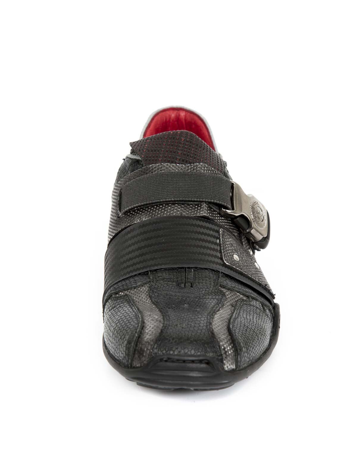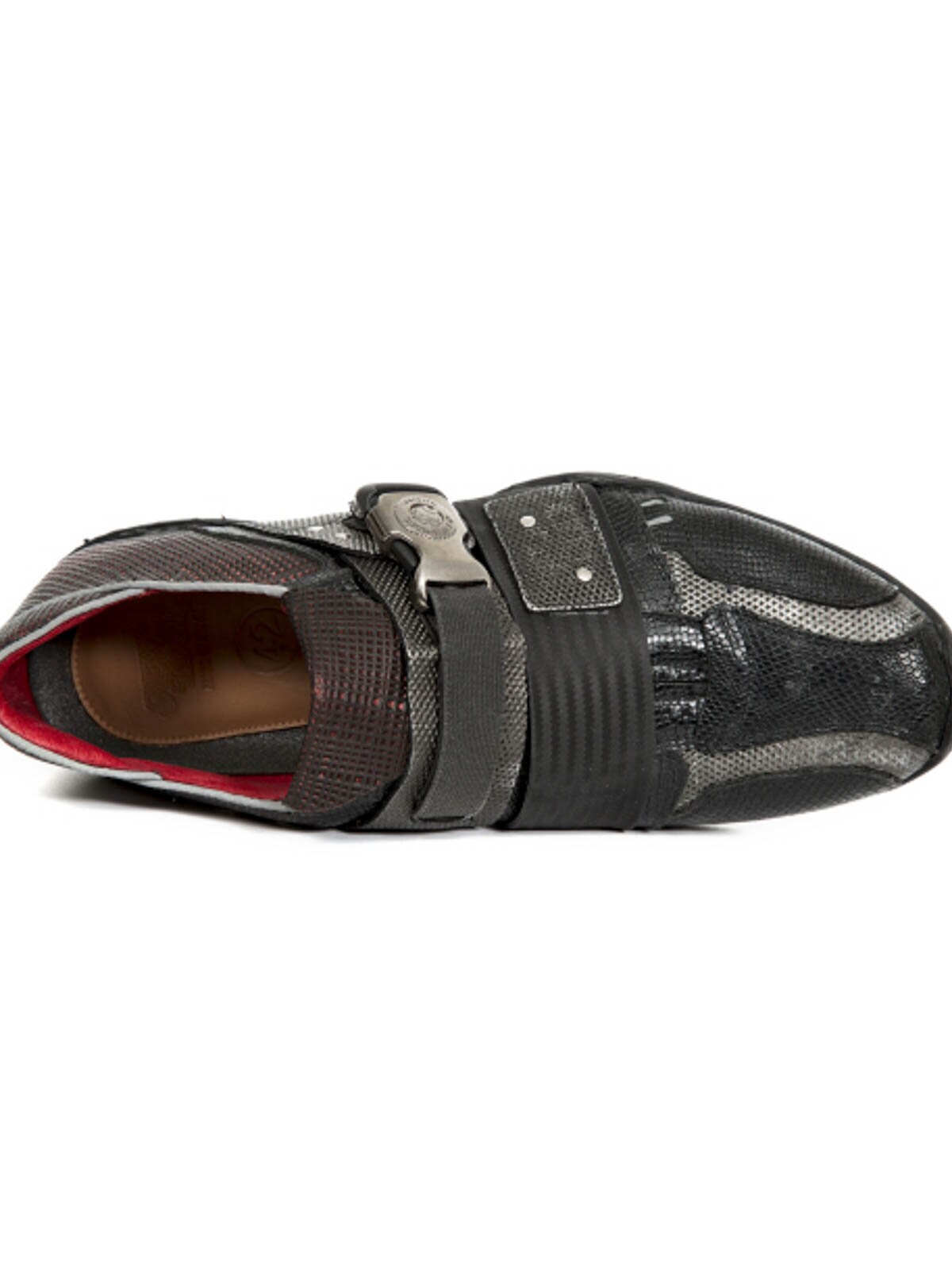 Półbuty ze skóry z gumową podeszwą i stylowymi paskami. Są ozdobione czerwonymi elementami i zapinane na zatrzaskową metalową klamrę. Dostępne w limitowanej edycji, więc skorzystaj z okazji i spraw sobie wyjątkową parę!