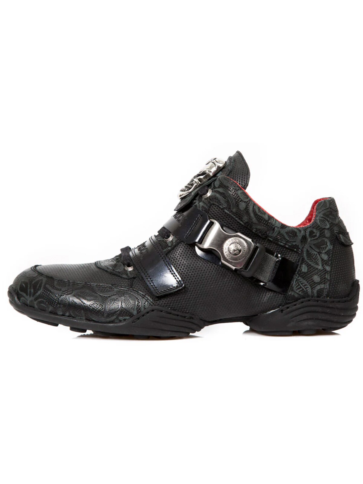 Półbuty ze skóry z gumową podeszwą i stylowymi paskami. Są ozdobione czerwonymi elementami i zapinane na zatrzaskową metalową klamrę. Dostępne w limitowanej edycji, więc skorzystaj z okazji i spraw sobie wyjątkową parę!