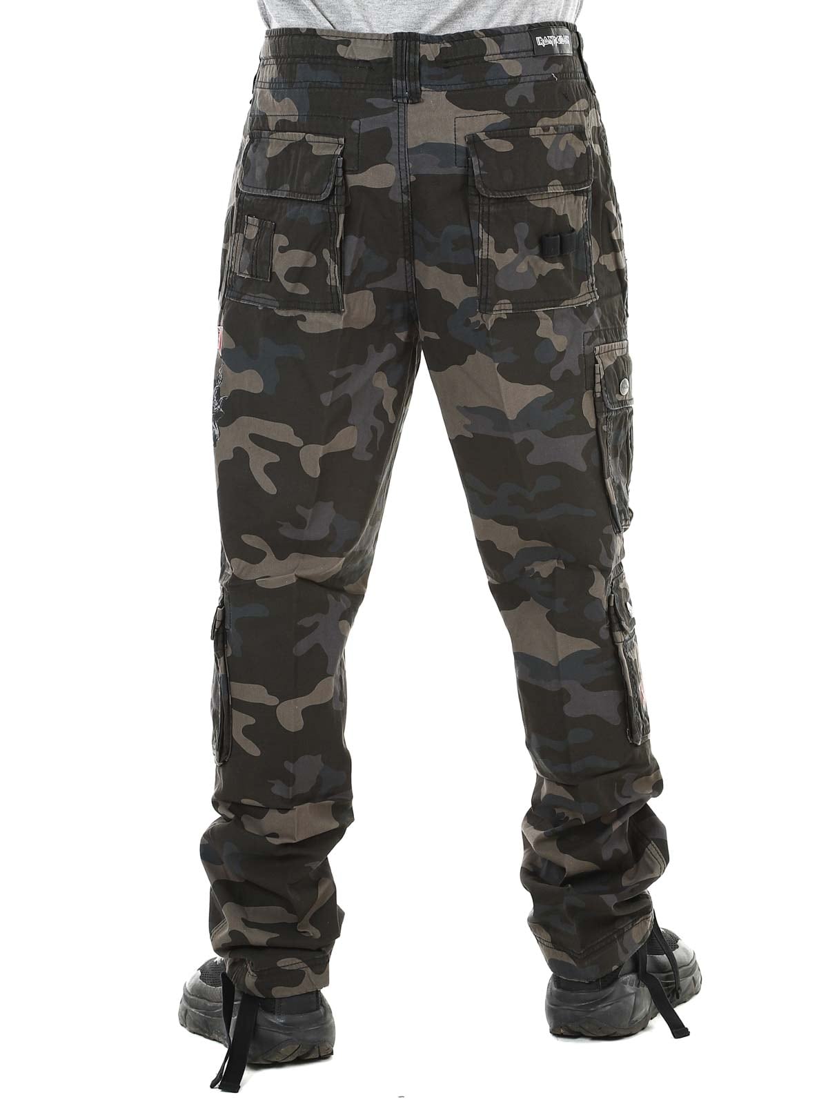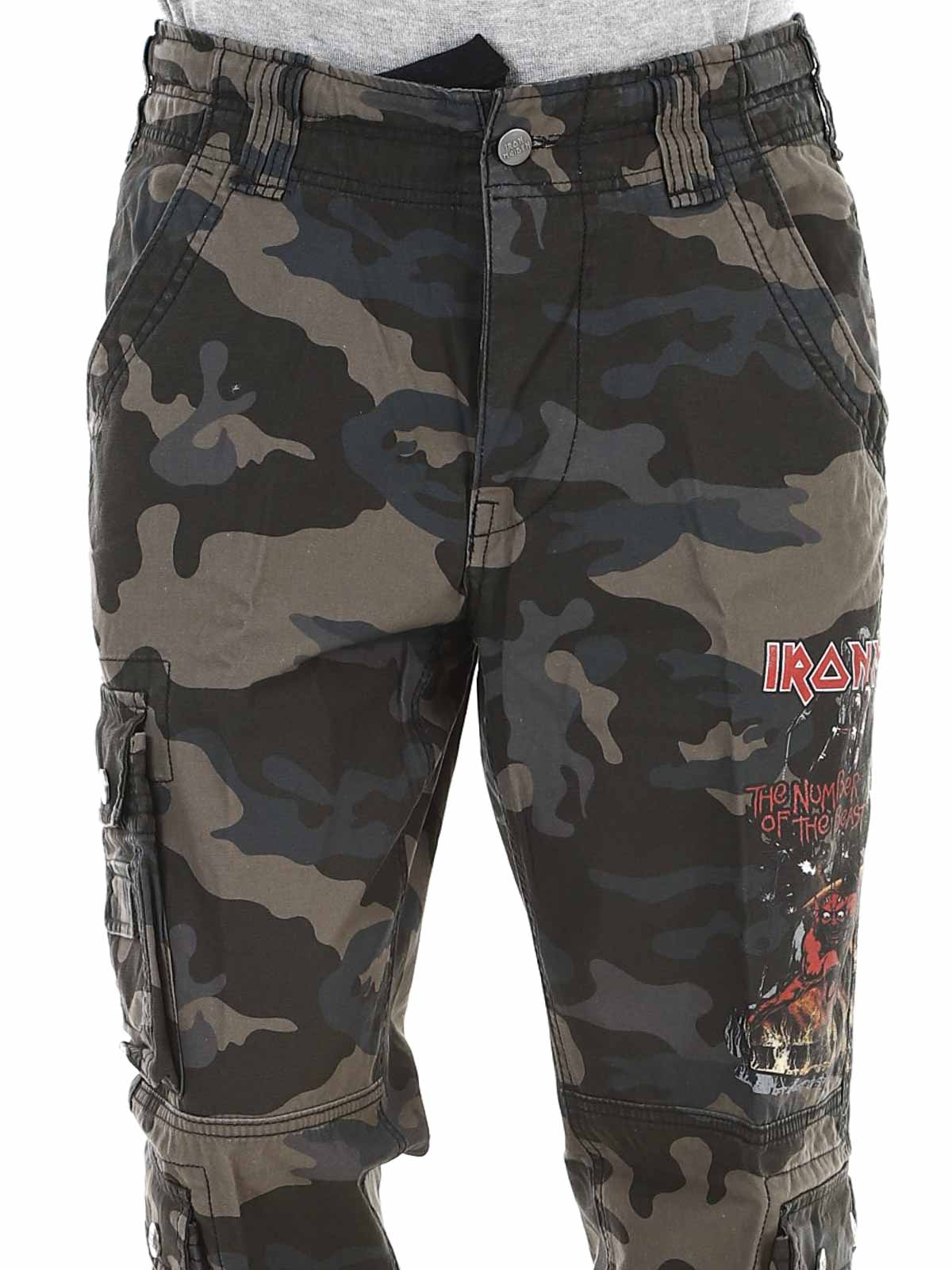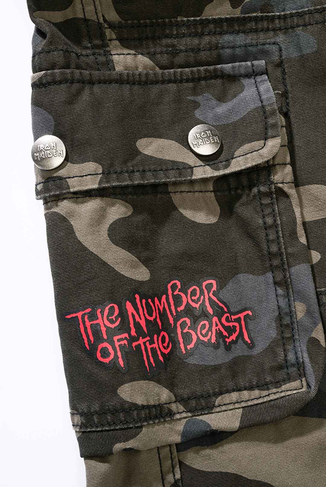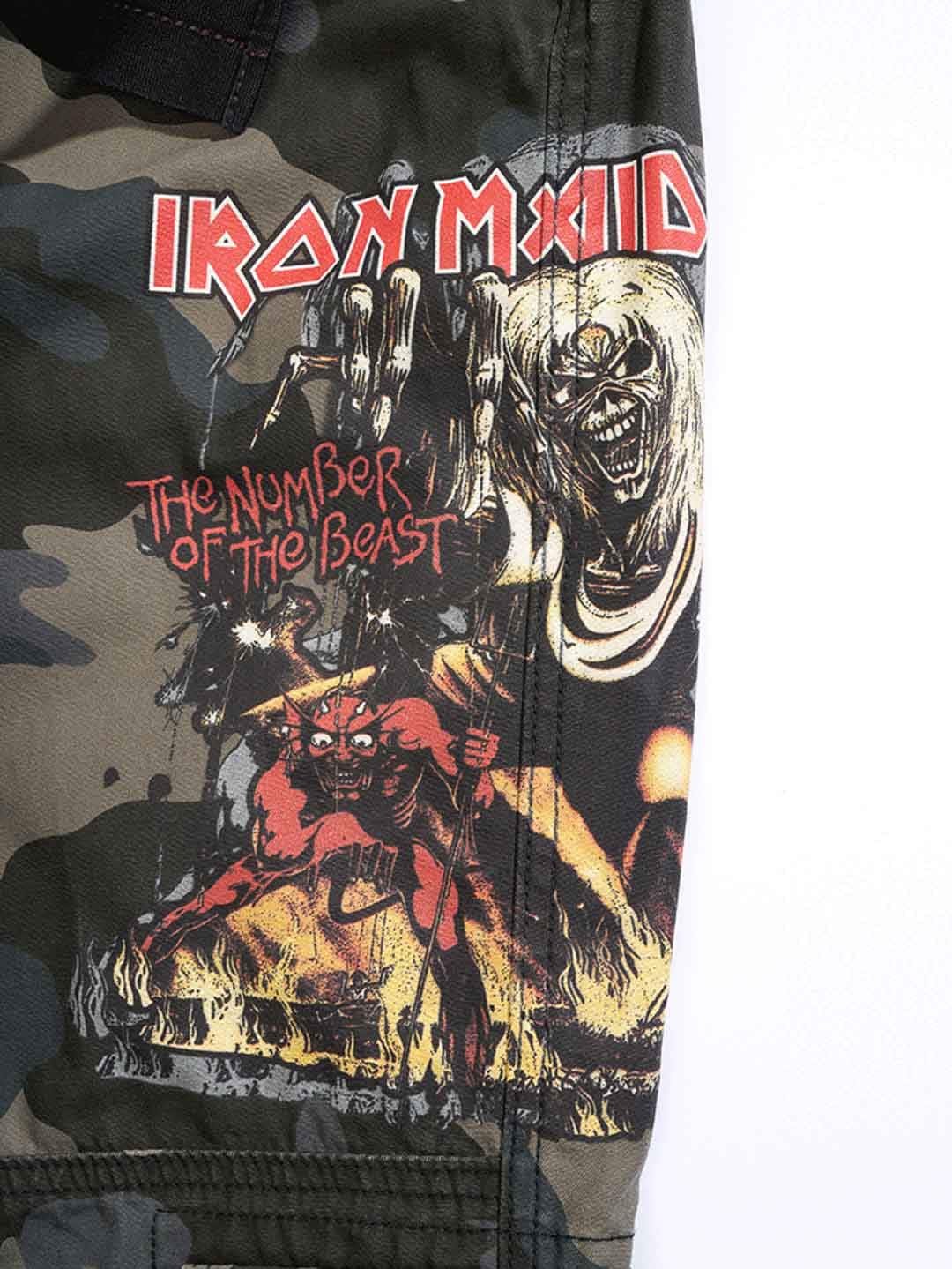 Ciemne spodnie o kroju slim fit, wykonane z wytrzymałej i przyjaznej dla skóry bawełny, zapewniającej zarówno komfort, jak i trwałość. Regulowane paski w pasie i nogawkach pozwalają łatwo dopasować rozmiar. Wyposażone w duży nadruk Iron Maiden na lewej nogawce oraz nadruk „Number of the Beast” na prawej kieszeni. Wyraźny hołd dla legendarnego zespołu heavy metalowego Iron Maiden.