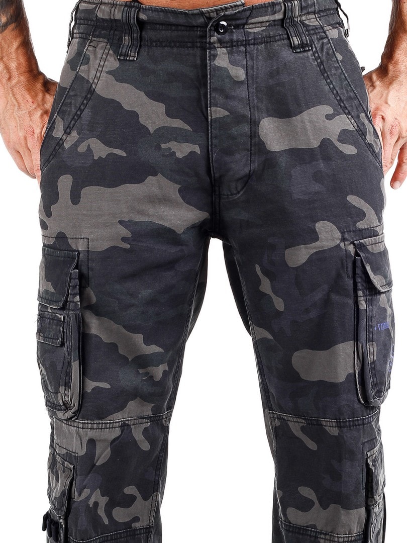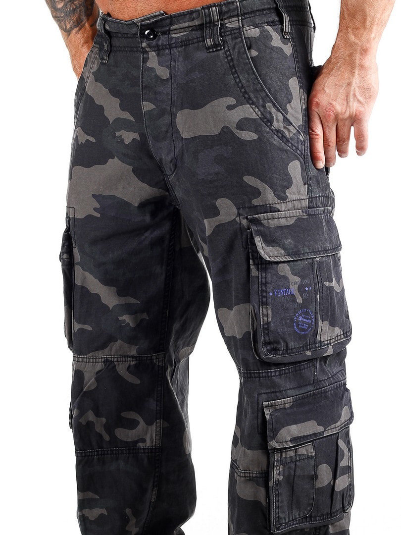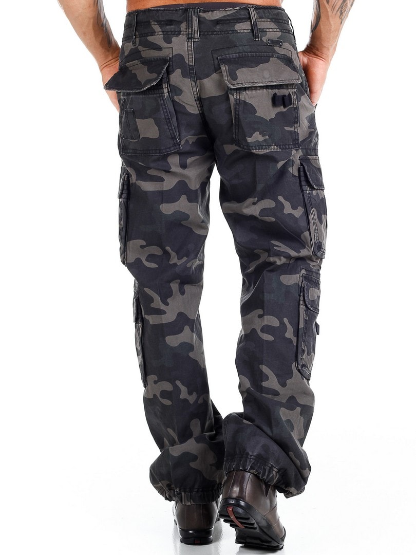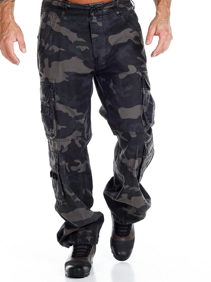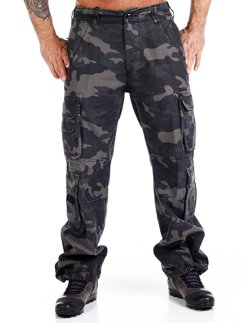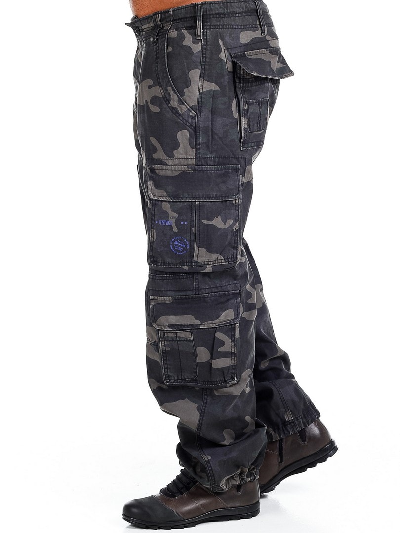 Wygodne bawełniane spodnie o luźnym kroju z kieszeniami po bokach. Praktyczne spodnie z dużą ilością pojemnych kieszeni, regulowane w pasie i na końcach nogawek.