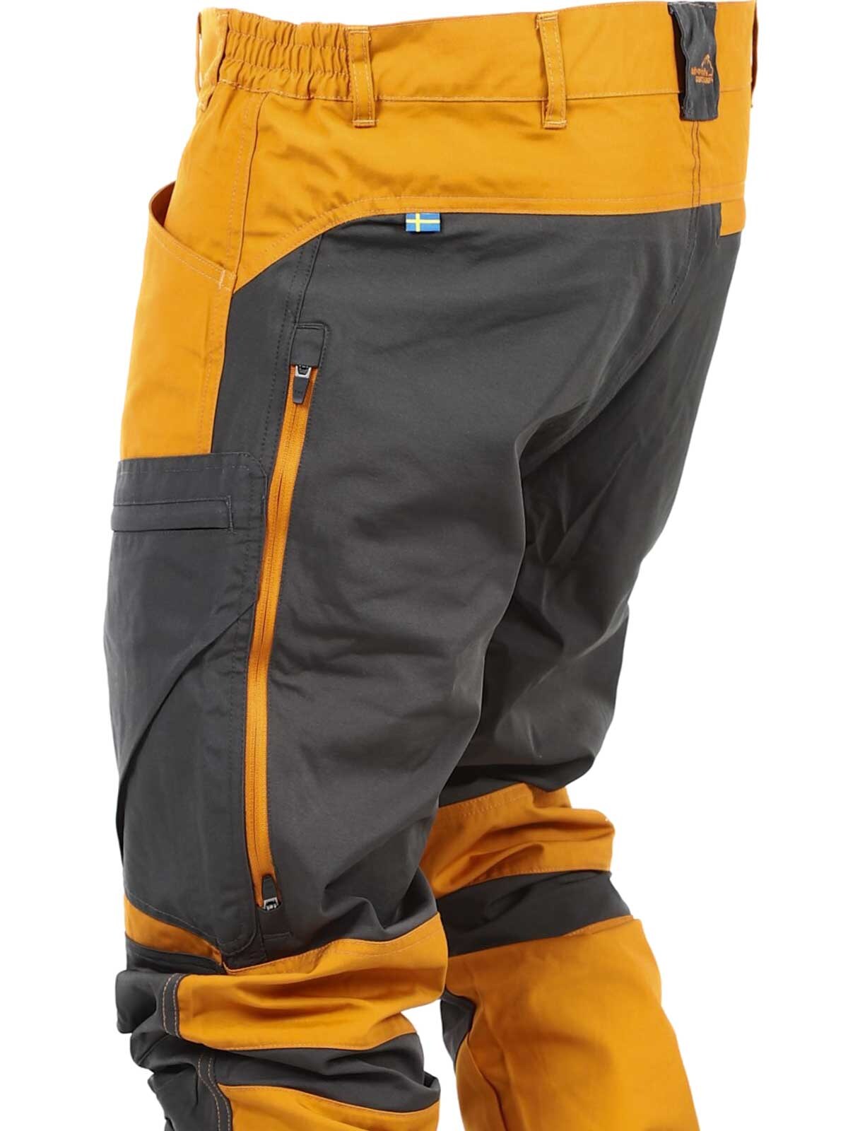 Te uniwersalne spodnie outdoorowe zostały zaprojektowane tak, aby zapewniać maksymalną swobodę ruchów i wygodę. Kolana, kostki i pośladki wykonane są z materiału rozciągliwego w 4 kierunkach z powłoką DWR, dzięki czemu spodnie są bardzo elastyczne. Dół nogawek wzmocniono regulowanymi ściągaczami i haczykiem na buty, co pozwala na idealne dopasowanie do butów. Aby zapewnić optymalną wentylację, na obu udach znajdują się siateczkowe otwory wentylacyjne, które można otworzyć. Spodnie mają łącznie pięć kieszeni, kieszeń tylna i kieszenie na udzie są zapinane na zamek błyskawiczny. Idealne do wszelkich aktywności na świeżym powietrzu!