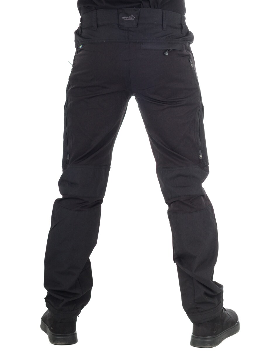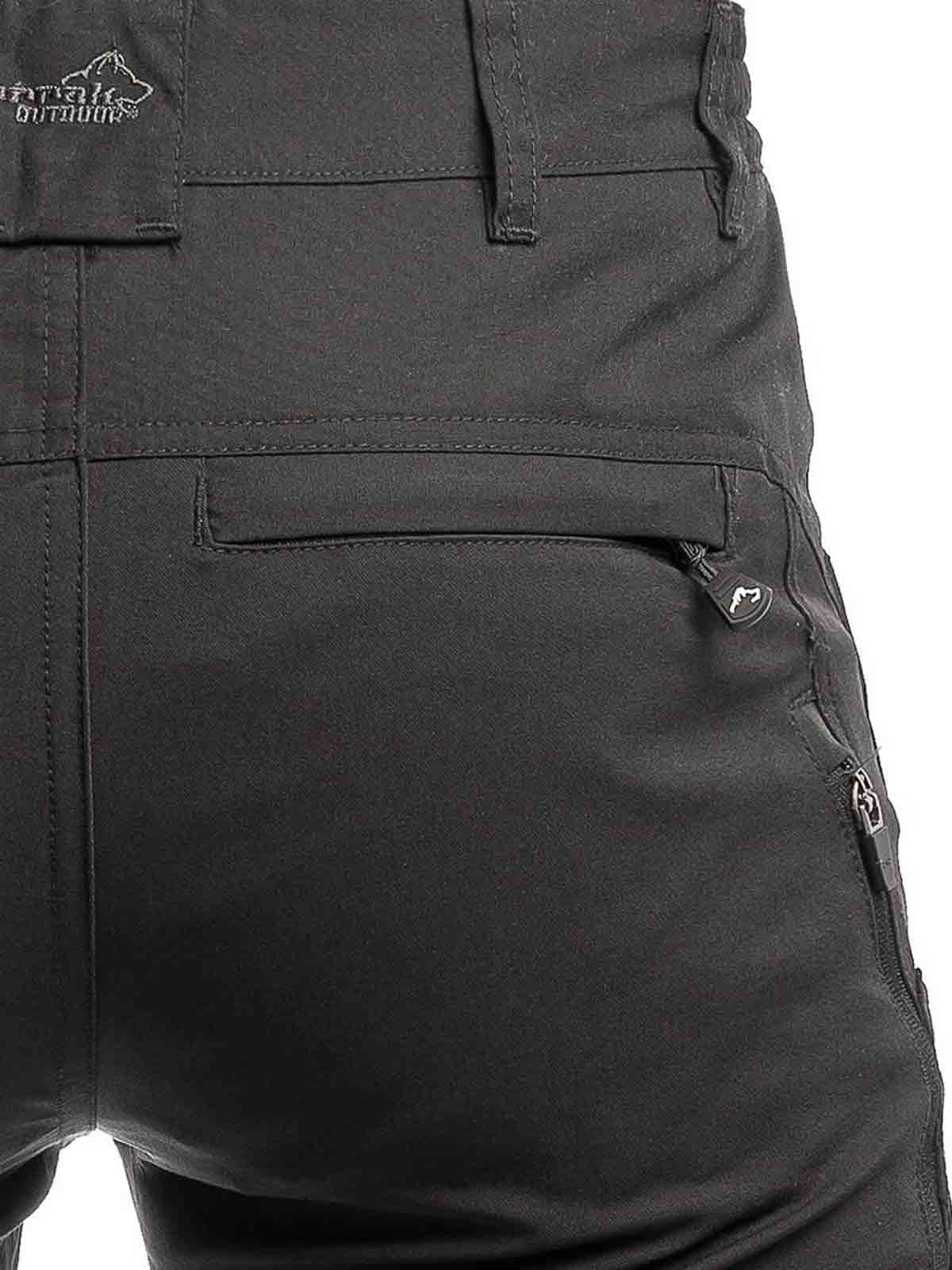 Te uniwersalne spodnie outdoorowe zostały zaprojektowane tak, aby zapewniać maksymalną swobodę ruchów i wygodę. Kolana, kostki i pośladki wykonane są z materiału rozciągliwego w 4 kierunkach z powłoką DWR, dzięki czemu spodnie są bardzo elastyczne. Dół nogawek wzmocniono regulowanymi ściągaczami i haczykiem na buty, co pozwala na idealne dopasowanie do butów. Aby zapewnić optymalną wentylację, na obu udach znajdują się siateczkowe otwory wentylacyjne, które można otworzyć. Spodnie mają łącznie pięć kieszeni, kieszeń tylna i kieszenie na udzie są zapinane na zamek błyskawiczny. Idealne do wszelkich aktywności na świeżym powietrzu!