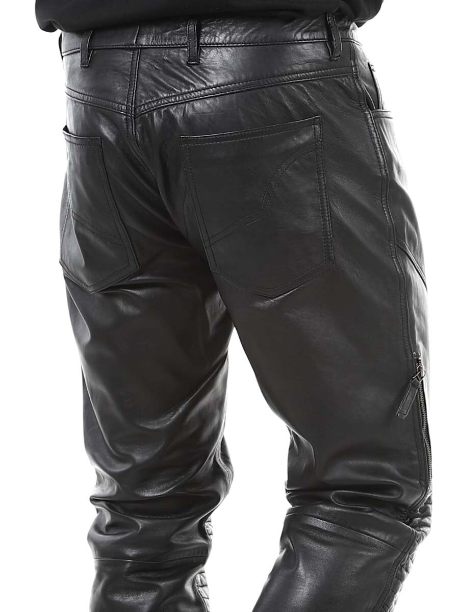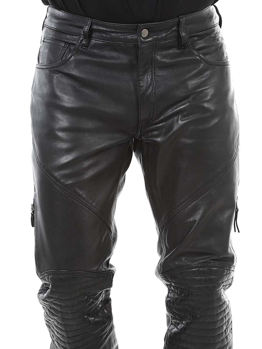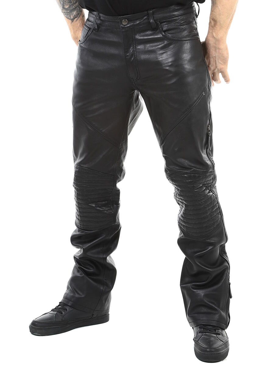 Stylowe spodnie wykonane z prawdziwej owczej skóry, która nadaje im miękkość i elastyczność, zachowując jednocześnie trwałą i długotrwałą jakość. Posiadają pięć klasycznych kieszeni i zamki błyskawiczne u dołu, co pozwala na indywidualne dopasowanie. Zamek błyskawiczny i wyściełane kolana. Zaprojektowane dla entuzjastów motorów i tych, którzy szukają ostrego wyglądu!
