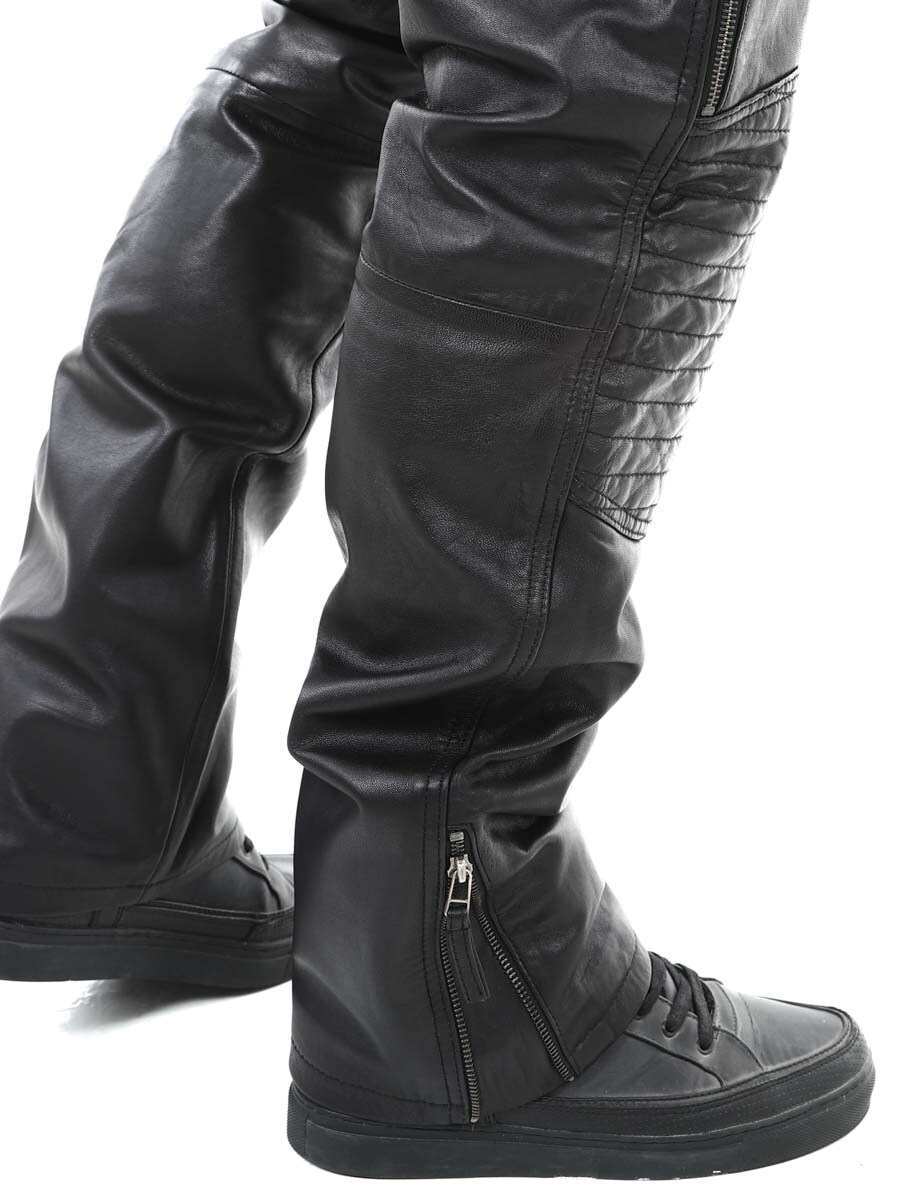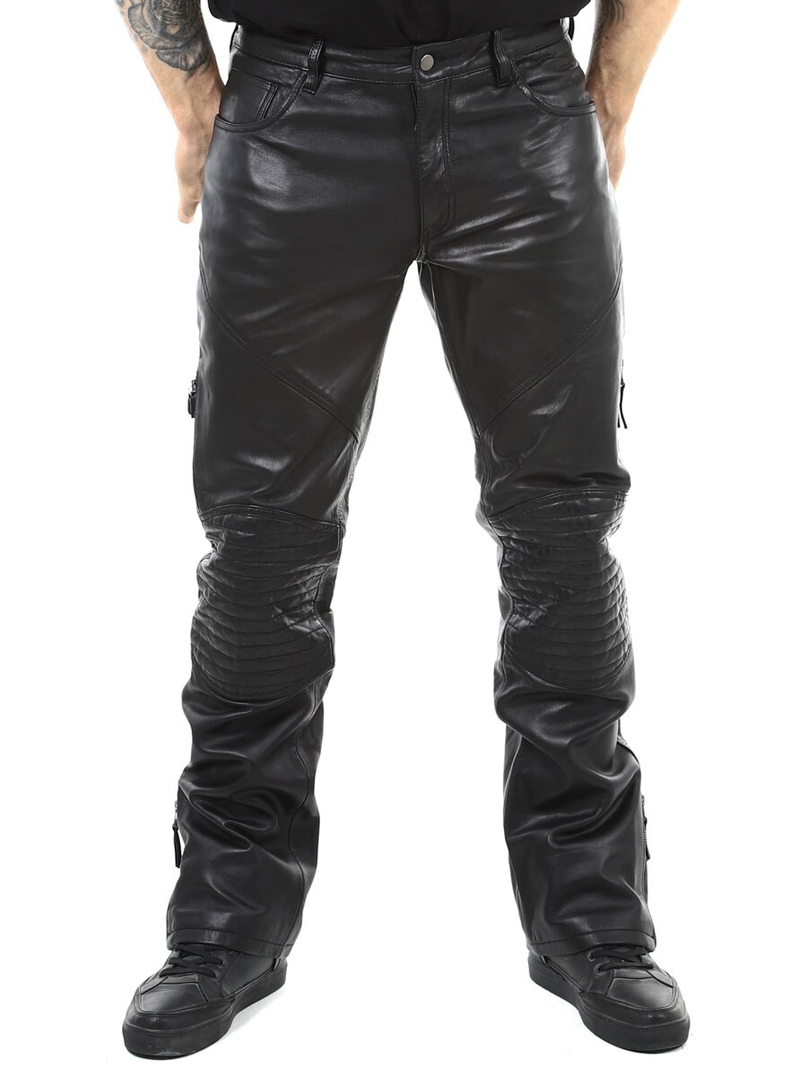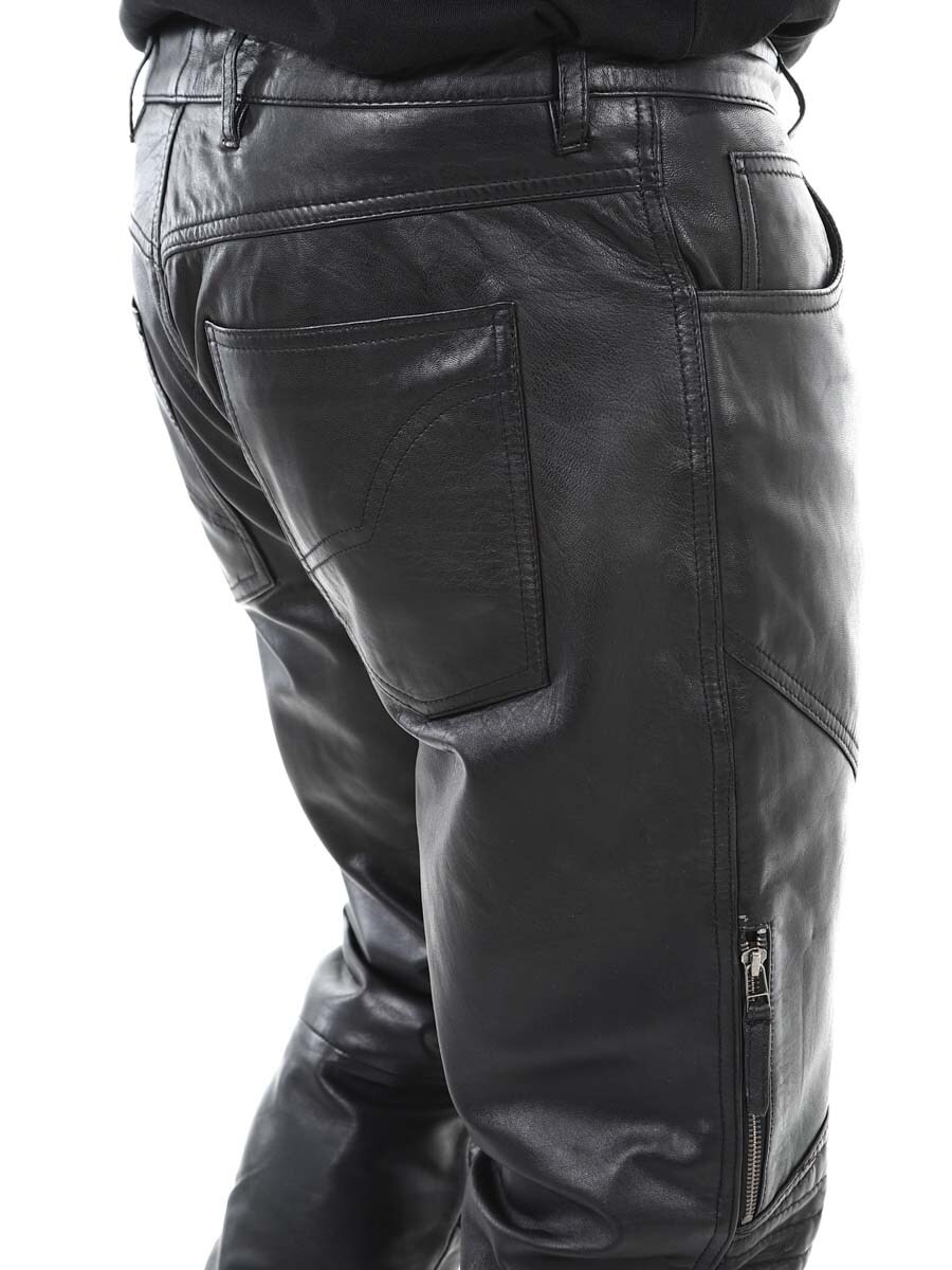 Stylowe spodnie wykonane z prawdziwej owczej skóry, która nadaje im miękkość i elastyczność, zachowując jednocześnie trwałą i długotrwałą jakość. Posiadają pięć klasycznych kieszeni i zamki błyskawiczne u dołu, co pozwala na indywidualne dopasowanie. Zamek błyskawiczny i wyściełane kolana. Zaprojektowane dla entuzjastów motorów i tych, którzy szukają ostrego wyglądu!