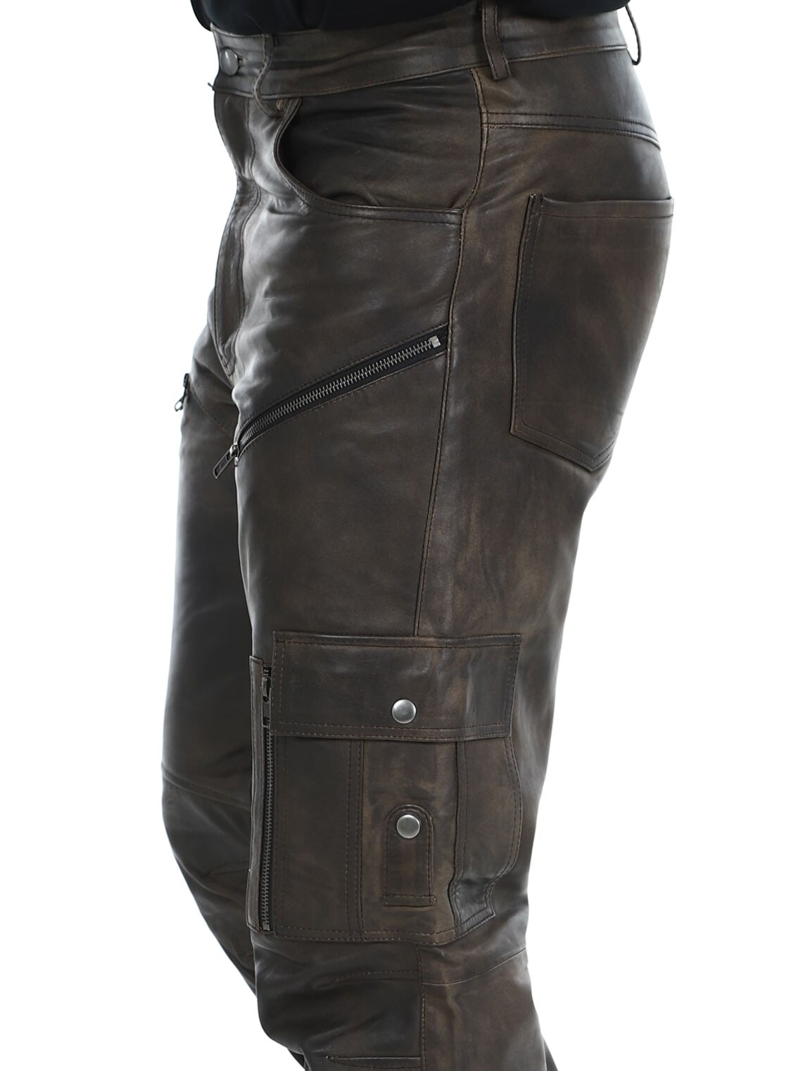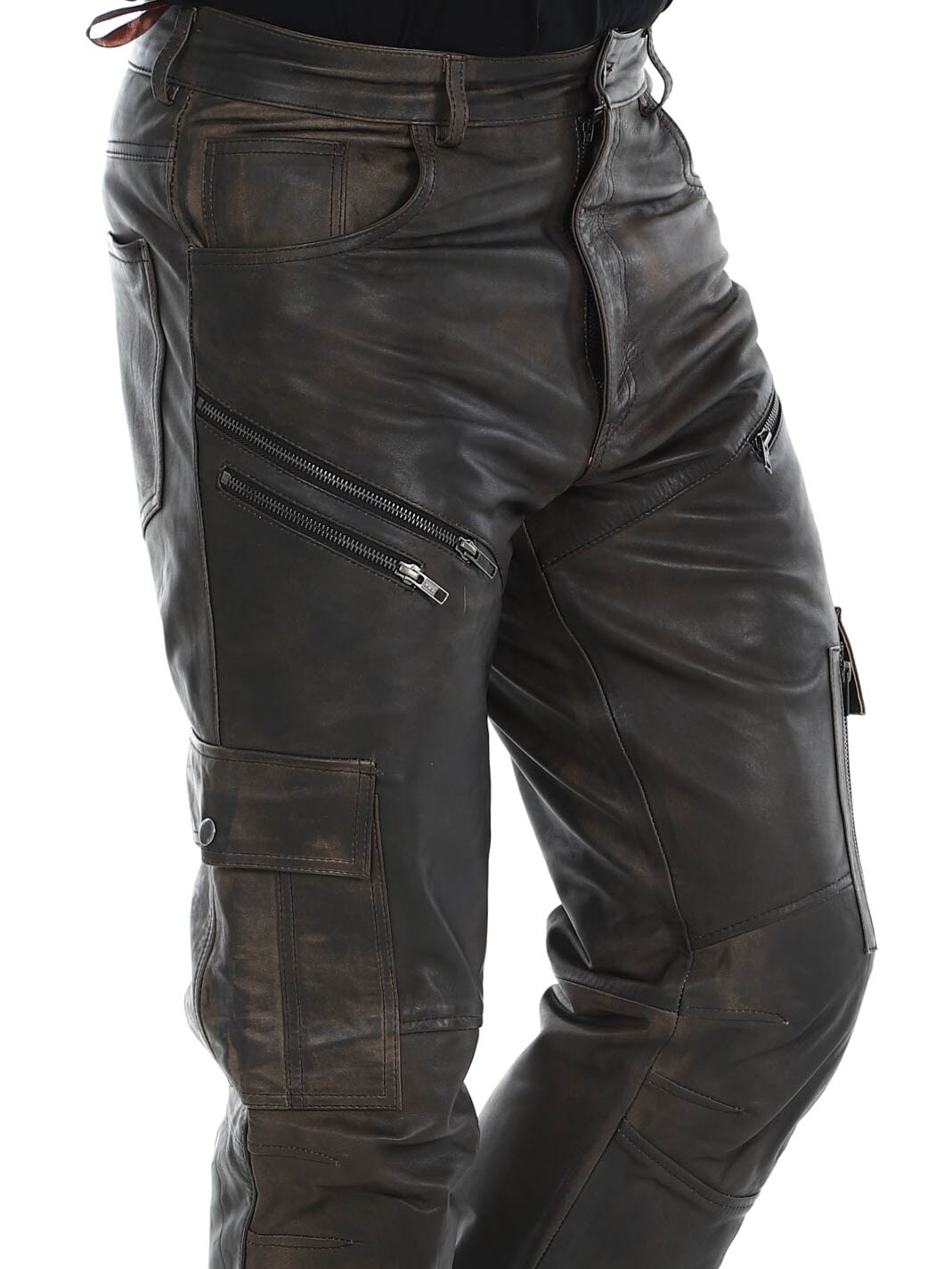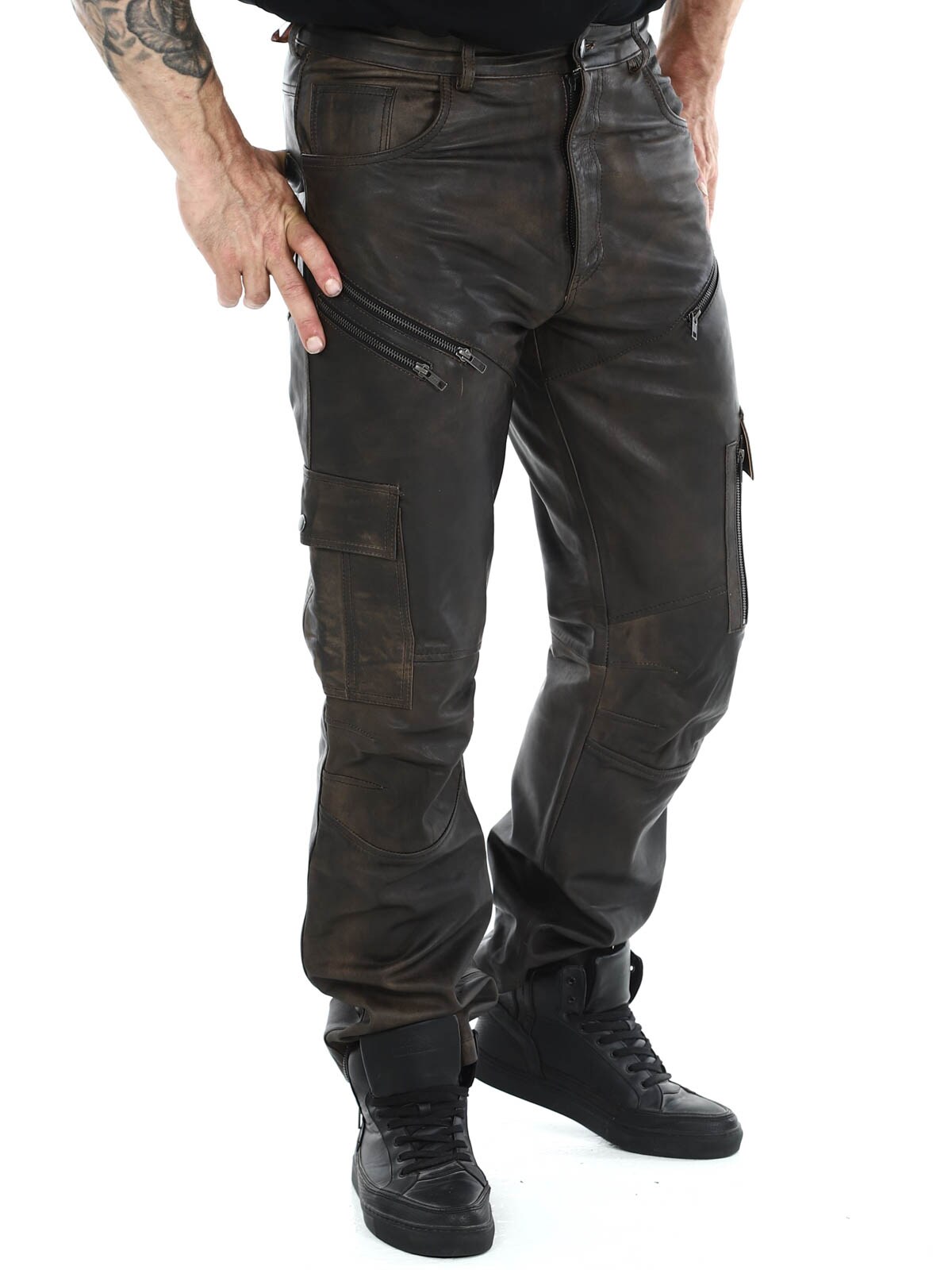 Spodnie Skórzane RD Salvatoro Cargo - Brązowe