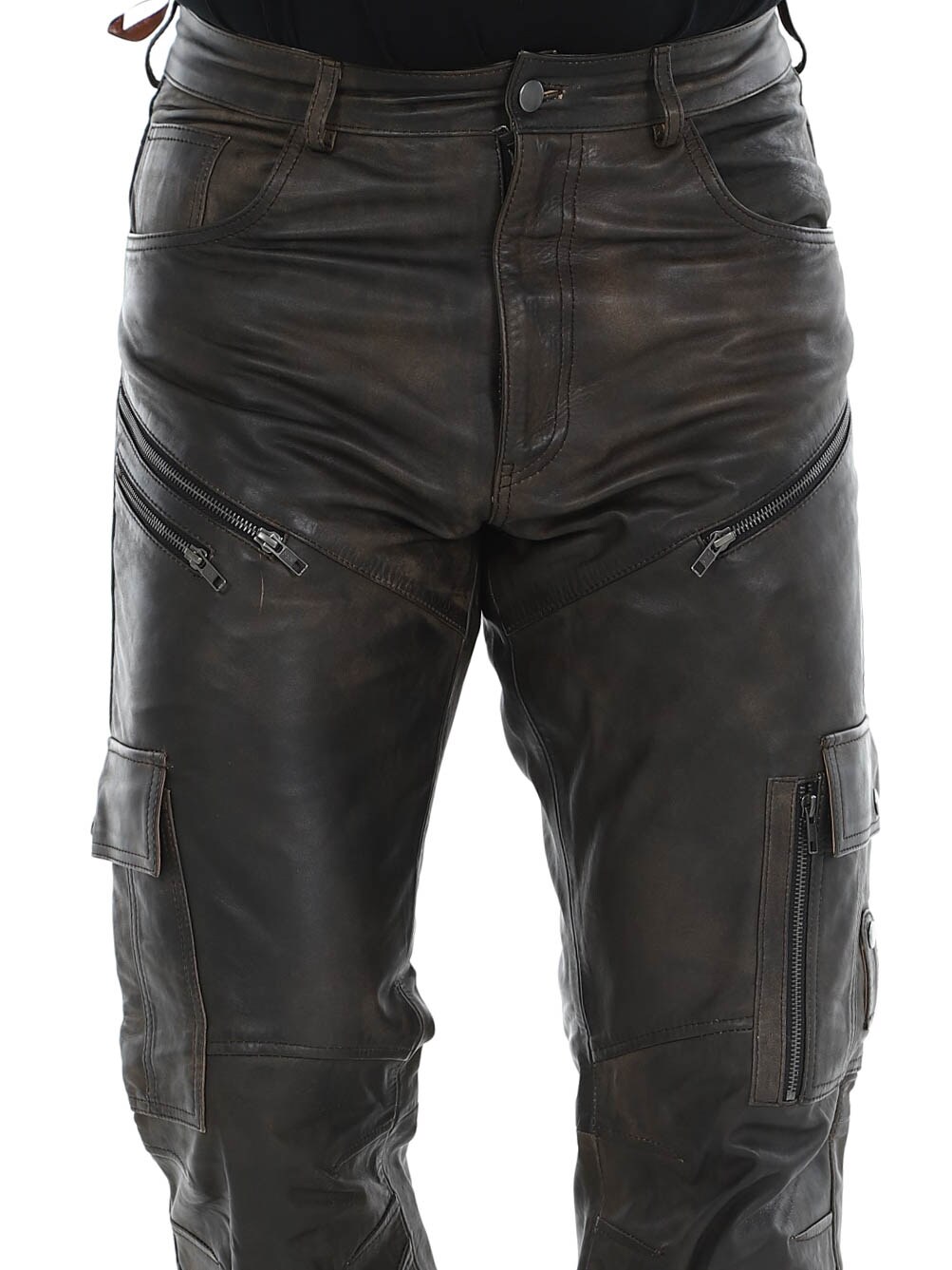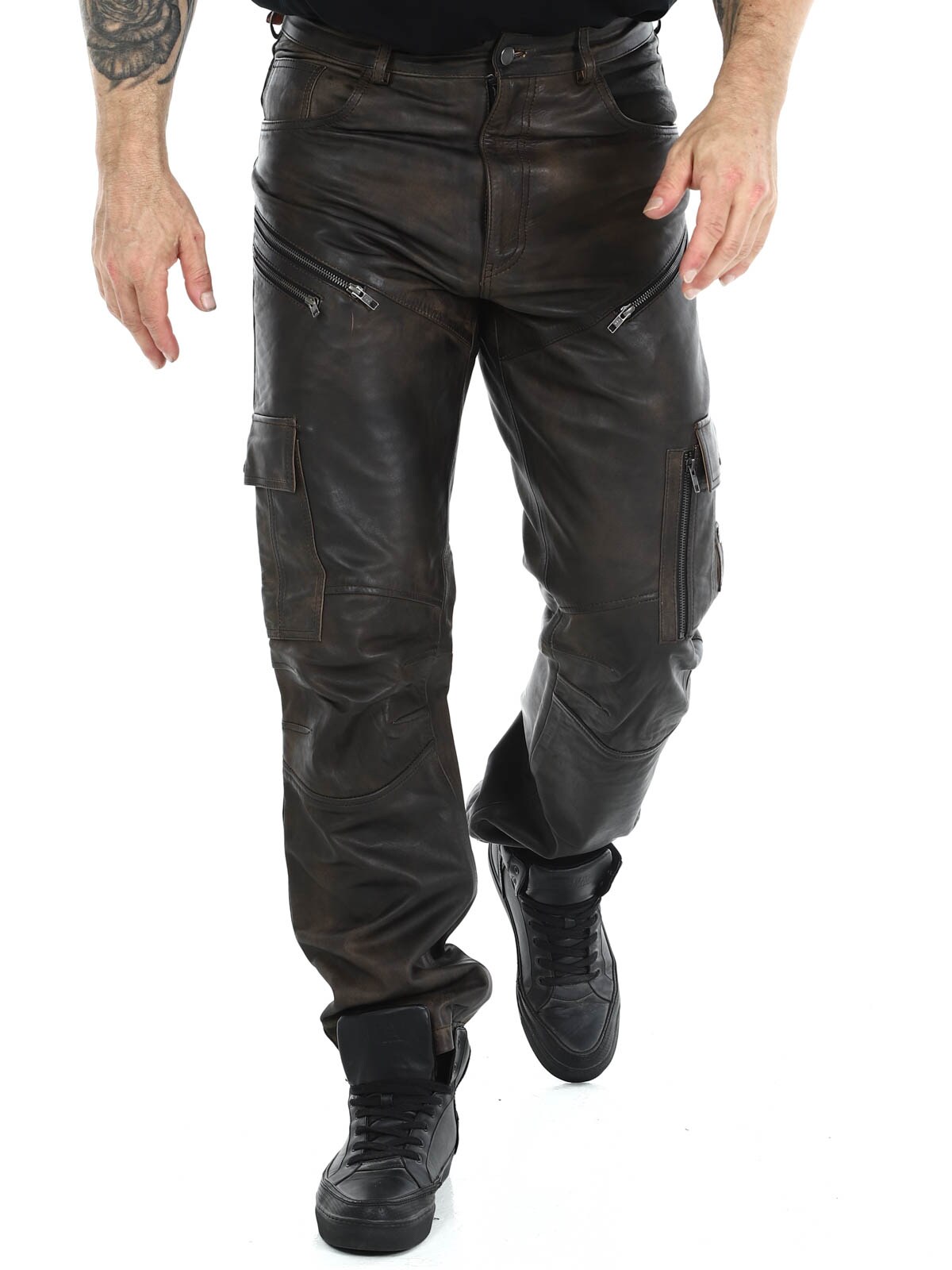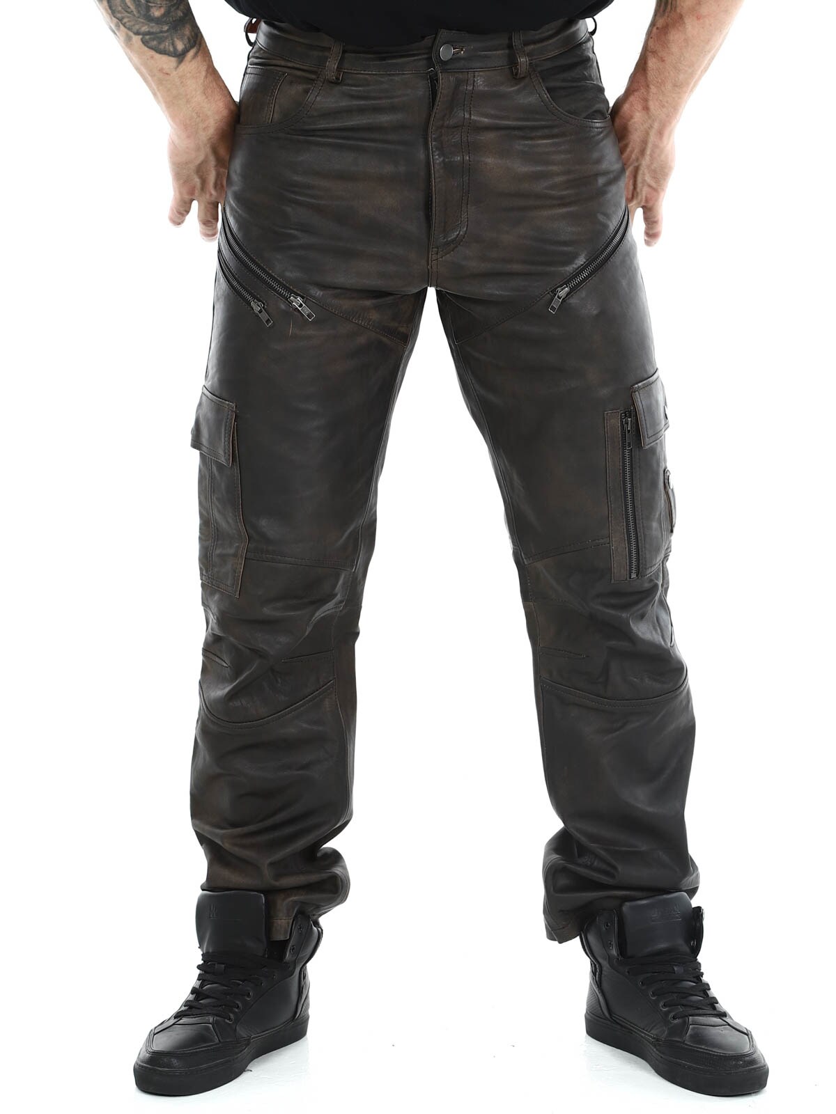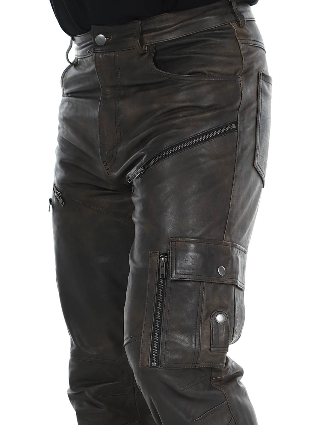 Spodnie Skórzane RD Salvatoro Cargo - Brązowe
