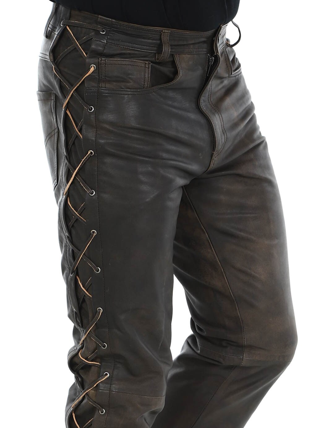 Wytrzymałe skórzane spodnie dla mężczyzn – Ponadczasowa klasyka. Skórzane spodnie to nieodłączny element rockowej mody męskiej. Ich surowy design i trwałe materiały nadają stylowy i pewny siebie wygląd. Idealne na co dzień i na koncerty – połącz je z kurtką motocyklową lub prostym t-shirtem. Nasze skórzane spodnie wykonane są z najwyższej jakości skóry, co gwarantuje wygodę i długą żywotność. Znajdź swój styl w RockDenim!
