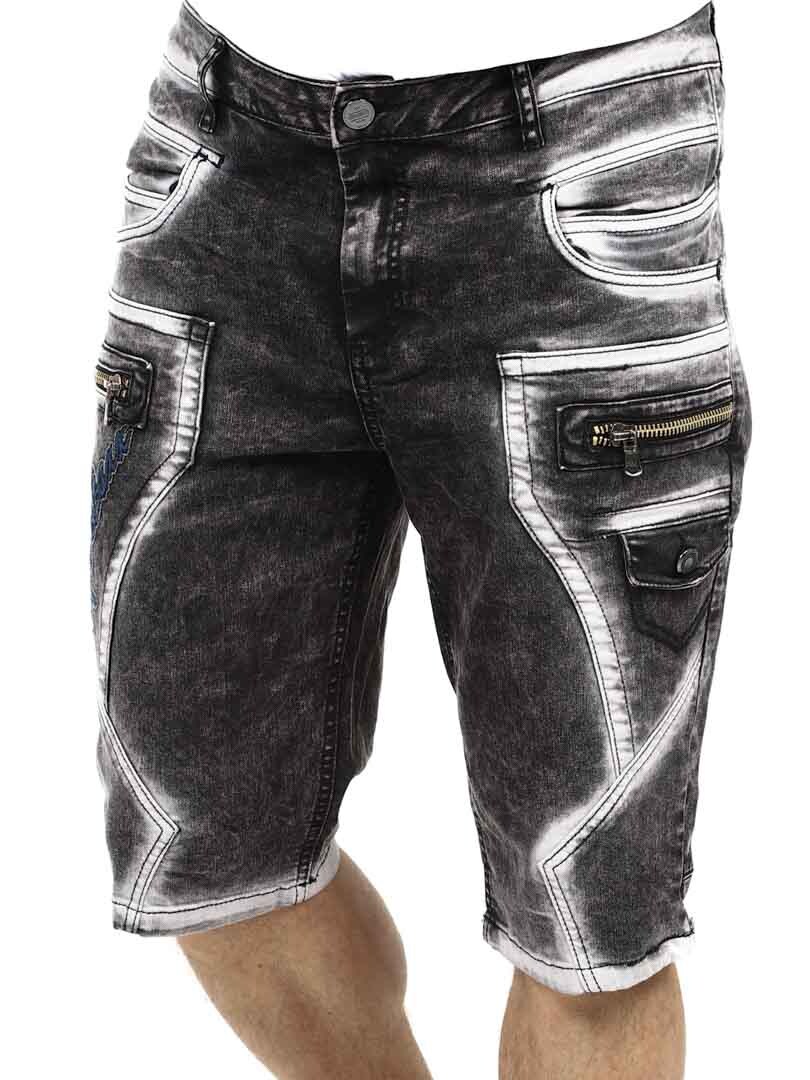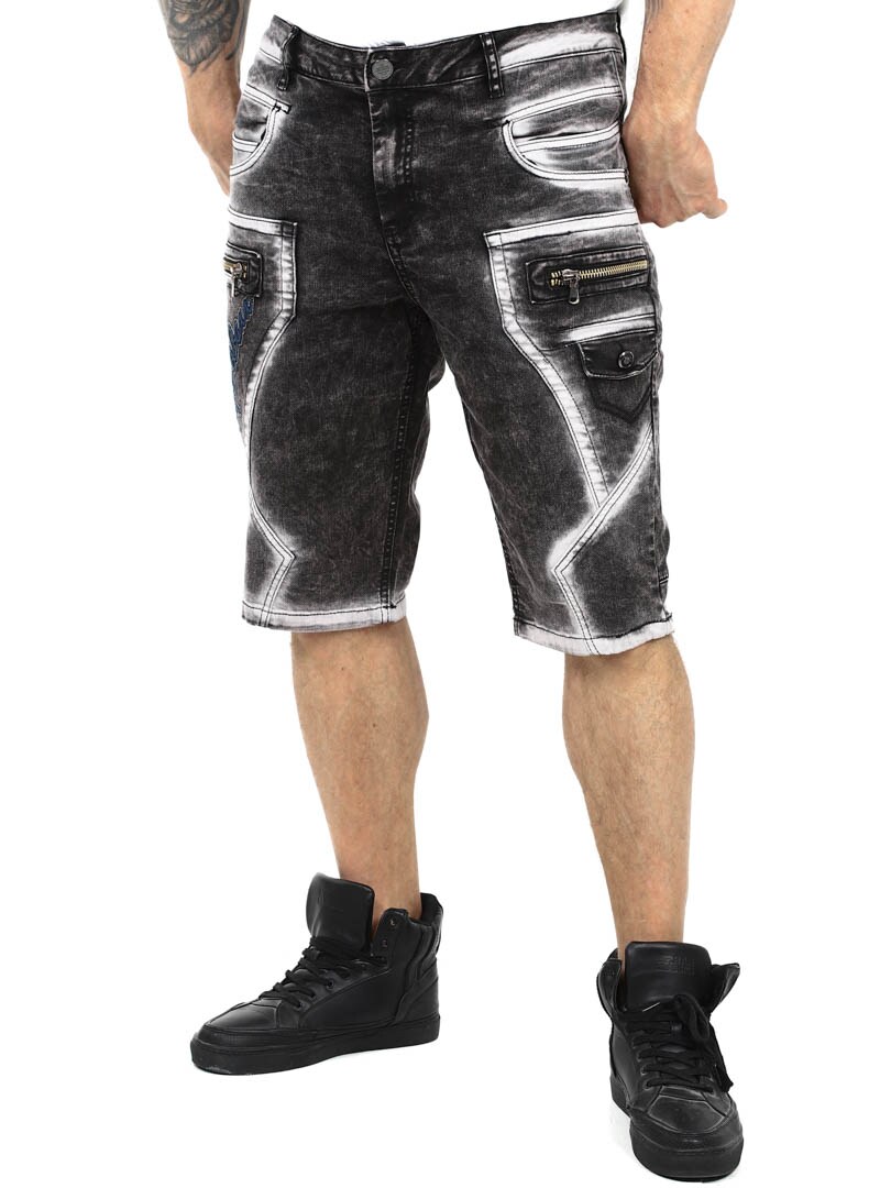 Ulepsz swój styl uliczny dzięki tym wyjątkowym szortom. Wykonane z wytrzymałego denimu z mocno spranym wykończeniem dla mocnego wyglądu. Mają wiele funkcjonalnych kieszeni, haftowane logo i grube szwy dla dodatkowej krawędzi. Przednie zamki błyskawiczne są ozdobne i nie są funkcjonalne.