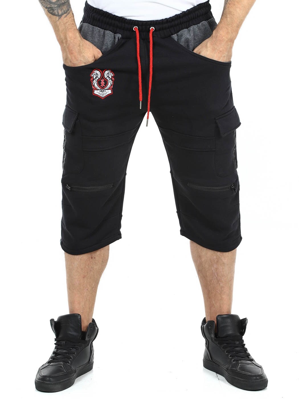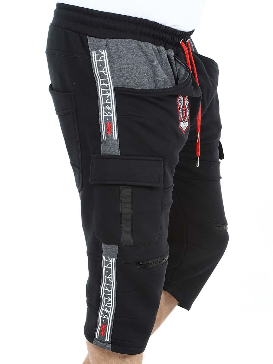 Szorty cargo z motywami inspirowanymi Wikingami. Posiadają kilka kieszeni oraz elastyczne ściągacze ze sznurkiem w pasie. Zamki błyskawiczne na nogawkach z przodu, które można rozpiąć i pełnią funkcję otworów wentylacyjnych. Te wyjątkowe spodenki dostępne są wyłącznie w RockDenim!