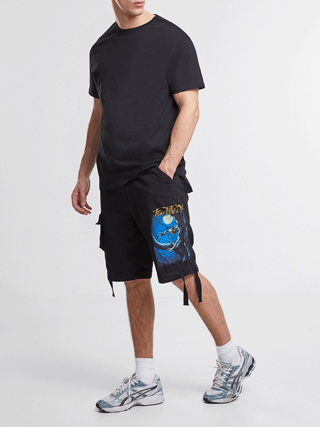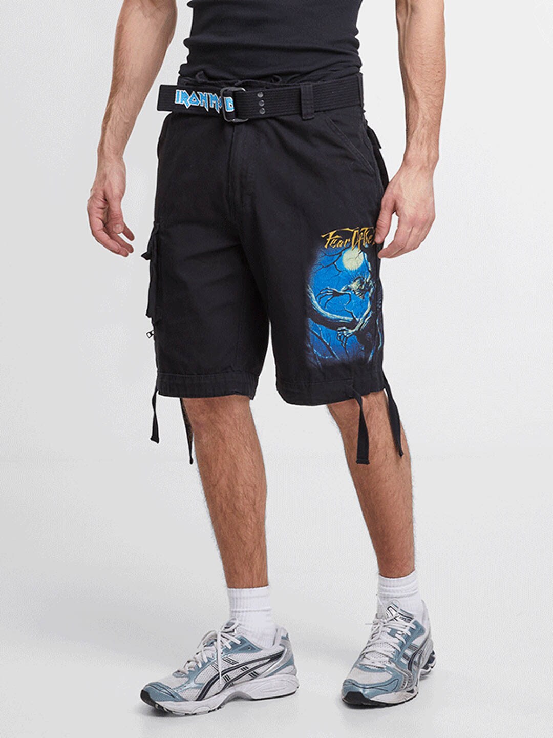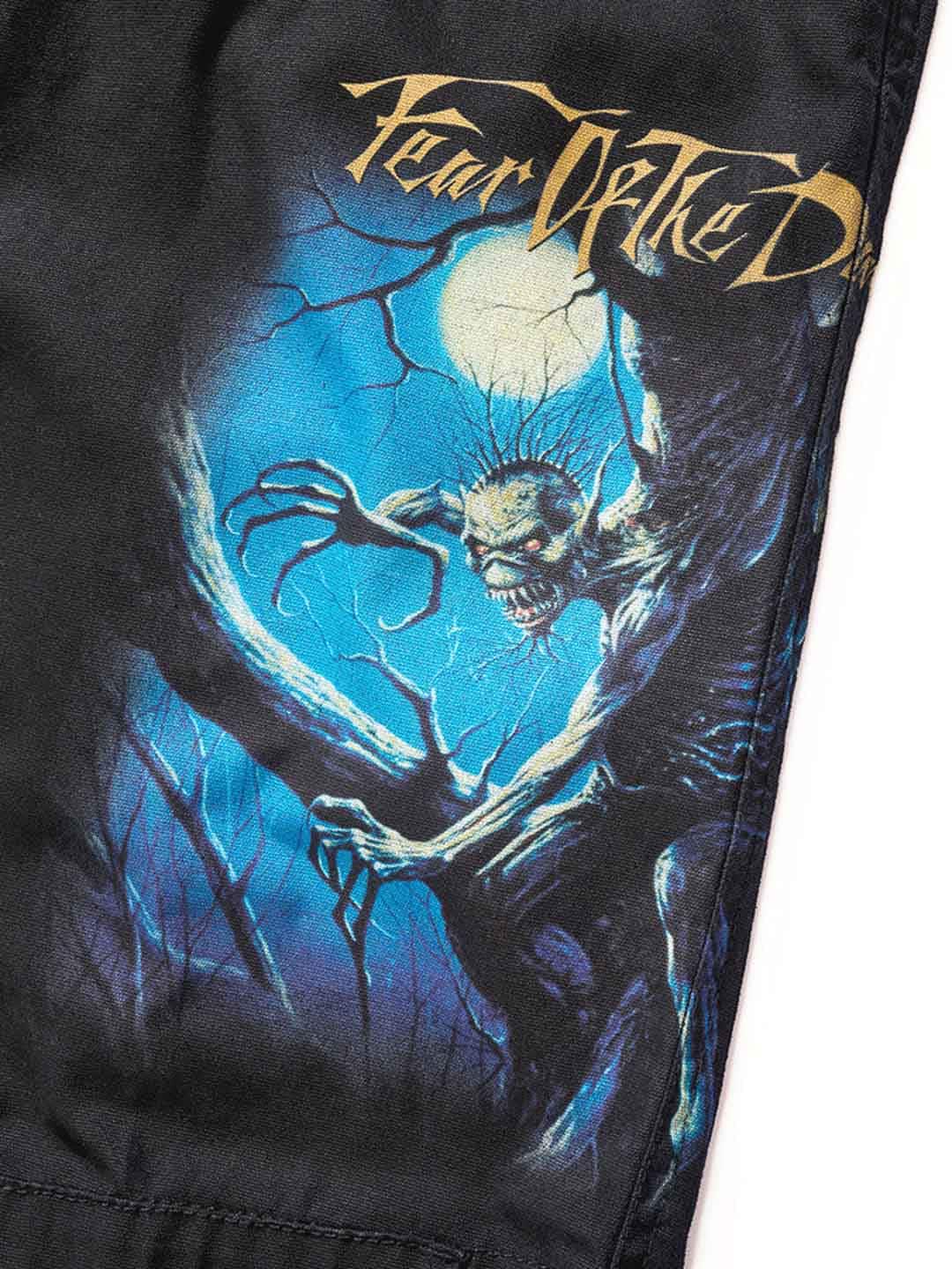 Wytrzymałe szorty cargo dla fanów Iron Maiden i klasycznego stylu rockowego. Szorty łączą solidny, inspirowany stylem militarnym design z kultowymi detalami z albumu Fear of the Dark. Wyposażone są w kilka praktycznych kieszeni oraz regulowane paski materiałowe w pasie i przy nogawkach, co ułatwia dopasowanie kroju dla optymalnego komfortu.