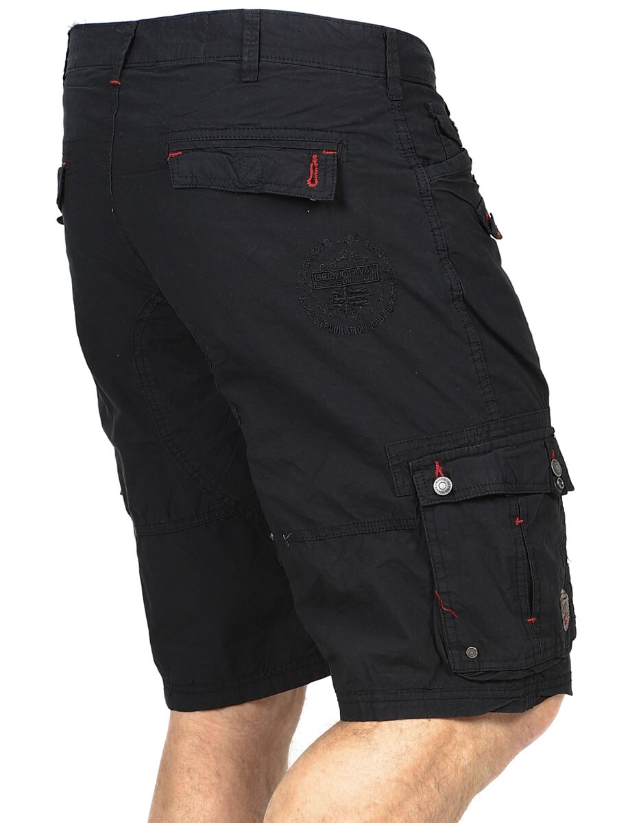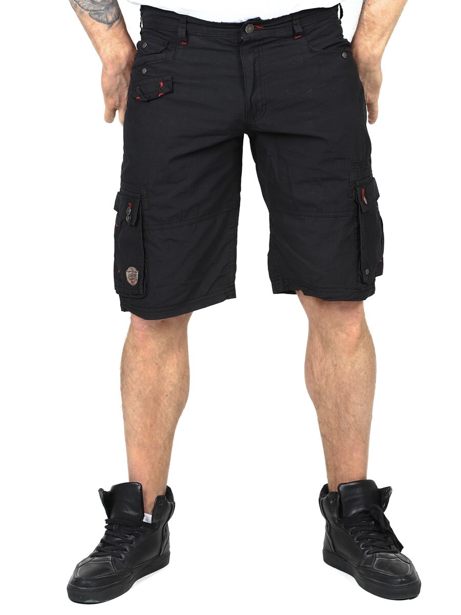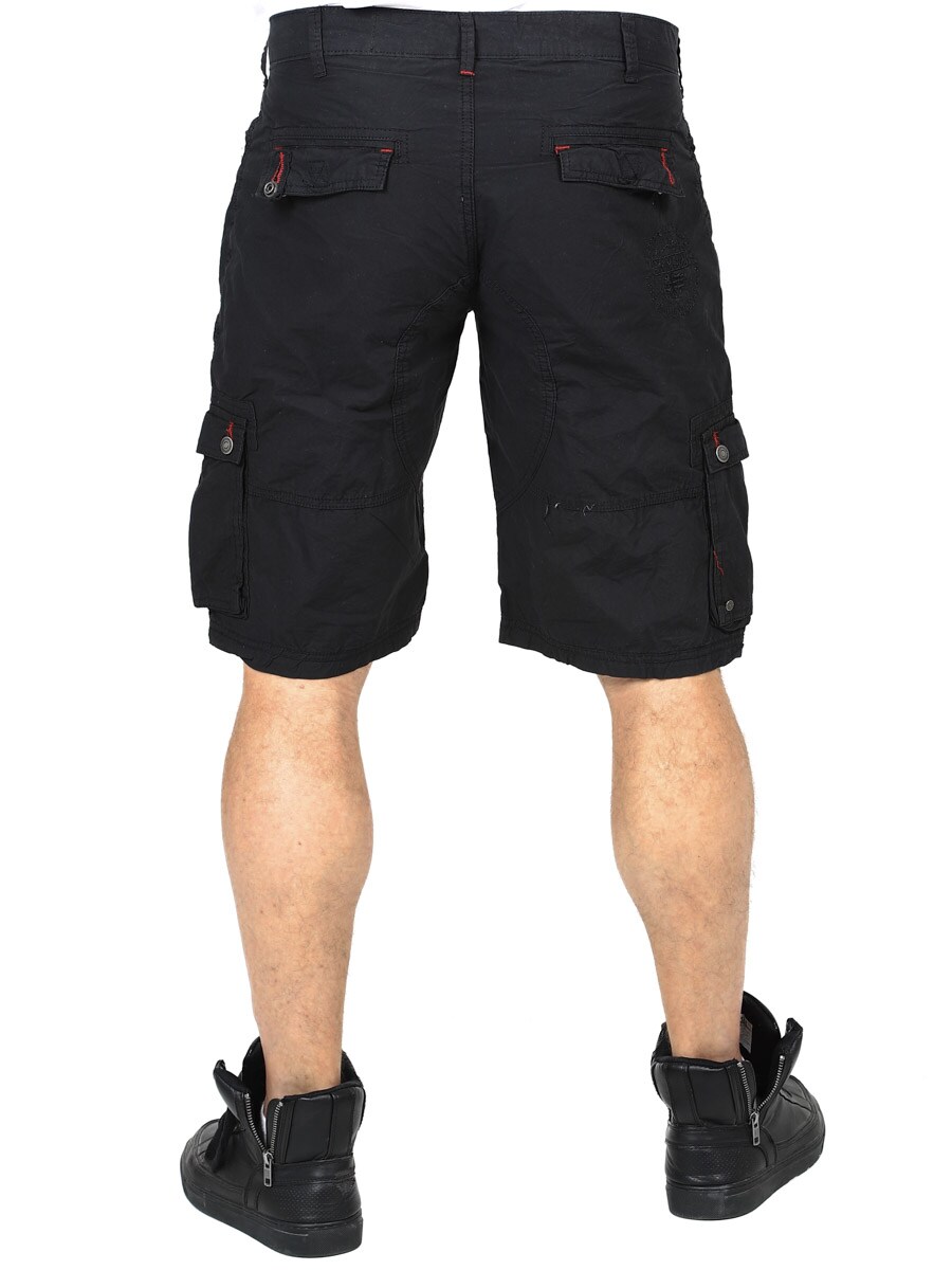 Przewiewne i wygodne szorty z regulowanym, materiałowym paskiem. Posiadają kilka kieszeni zarówno z przodu, jak i z tyłu, Zdobione nadrukami i naszywkami. Wykonane w 100% z bawełny.