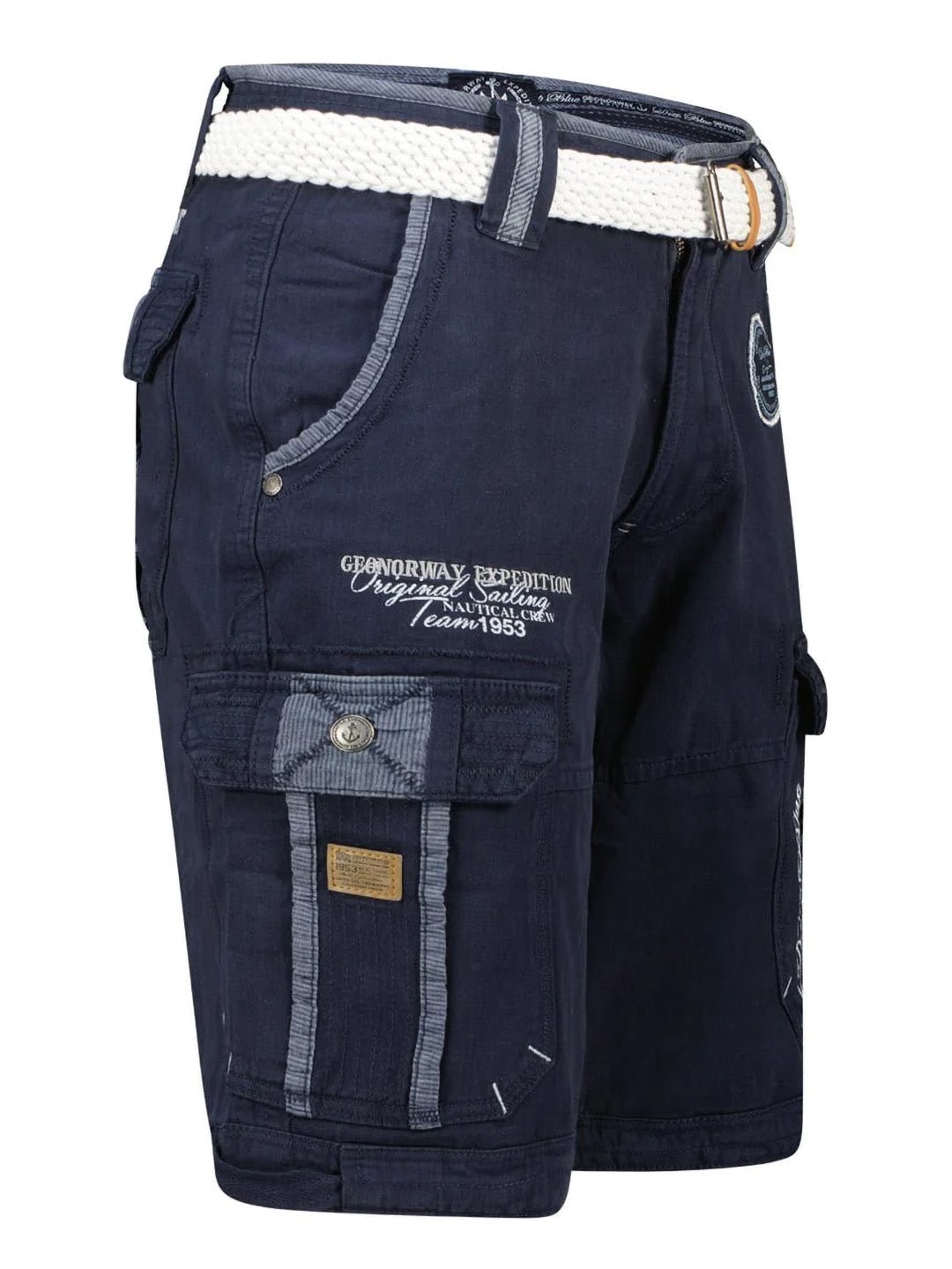 Stylowe szorty z grubszej bawełny. Są praktycznie zaprojektowane z kilkoma otwartymi i zamykanymi kieszeniami. W talii znajduje się materiałowy pasek z możliwością regulacji.