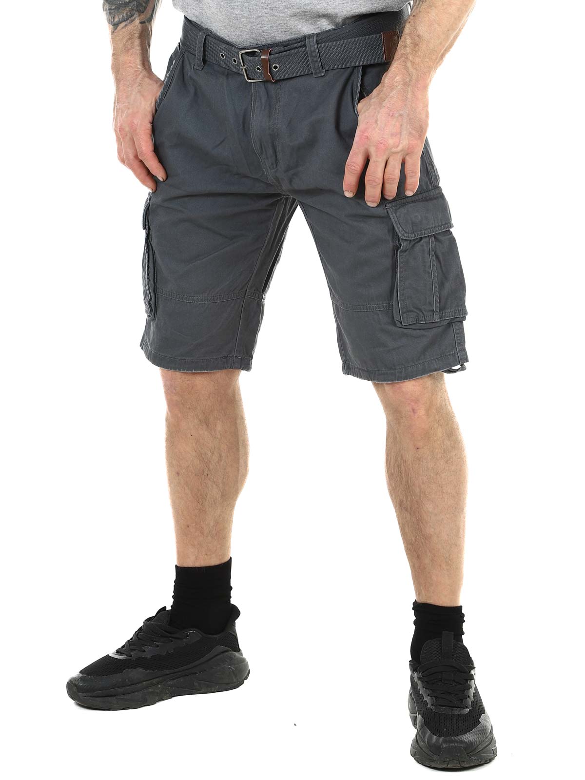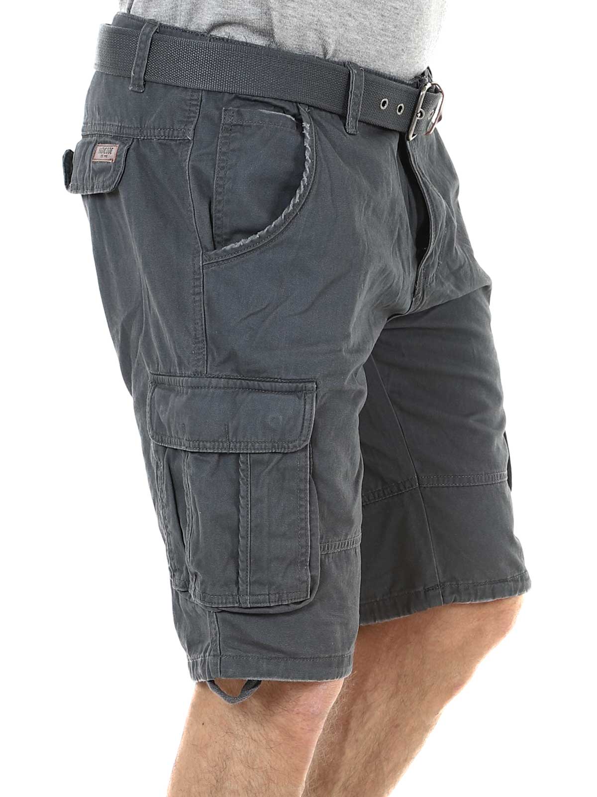 Stylowe szorty z wytrzymałej bawełny. Dużo pojemnych kieszeni, z których kilka jest zamykanych. Średniej długości model z paskiem w komplecie.