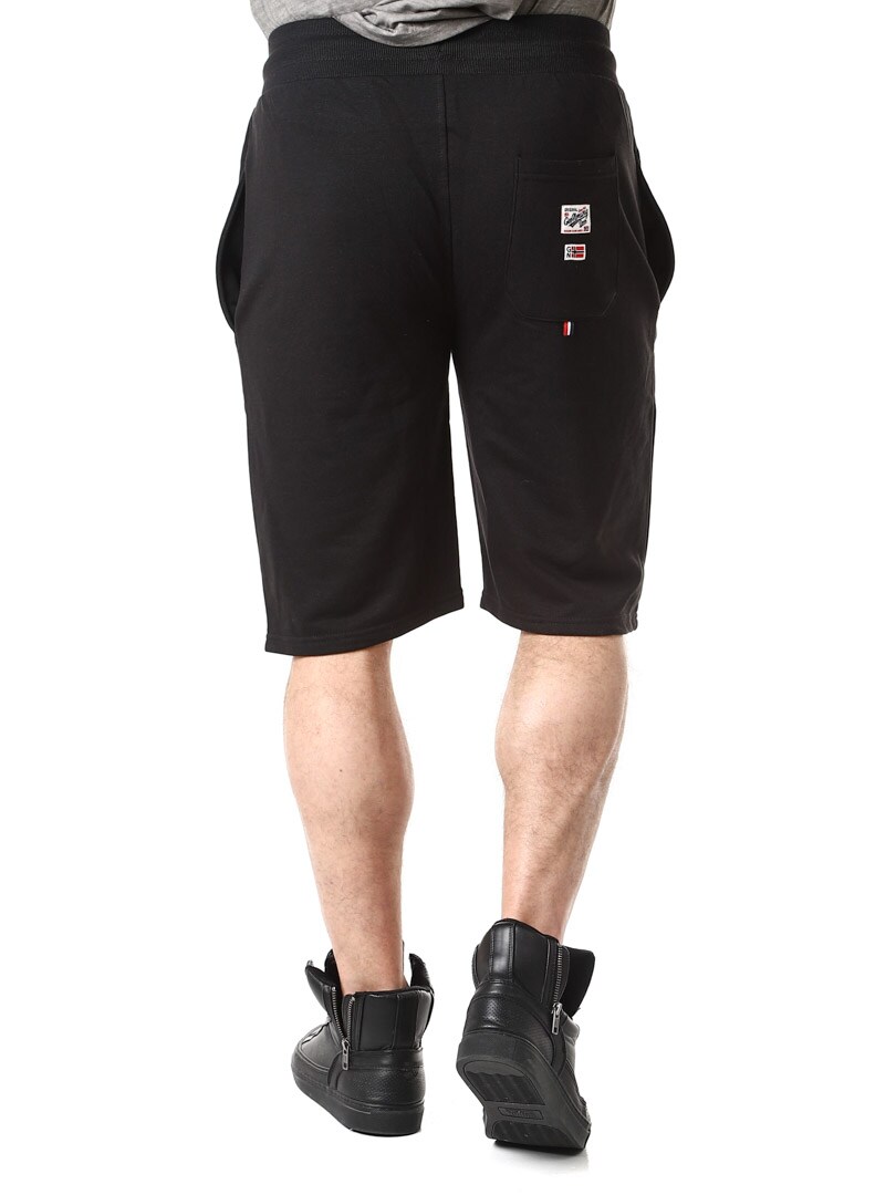 Gładkie szorty z nadrukiem, logo i naszywkami. Mają trzy otwarte kieszenie i ściągacz u dołu ze sznurkiem w talii. Wykonane są z miękkiej mieszanki bawełny.