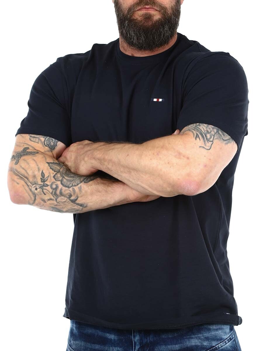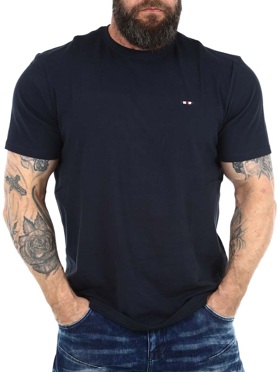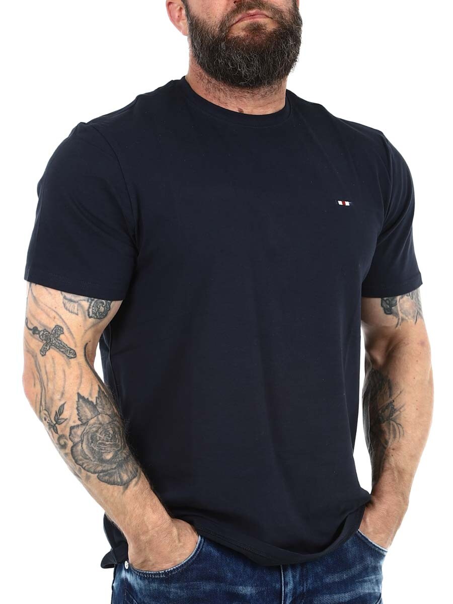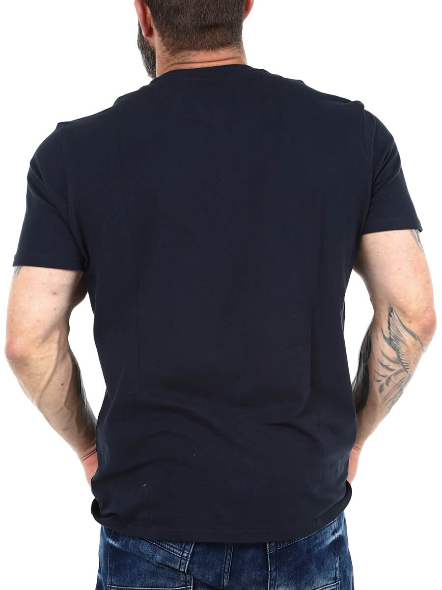 Gładka koszulka z miękkiego i elastycznego materiału. Posiada zaokrąglony otwór pod szyją, nadruk na piersi i materiałową naszywkę u dołu paska. To klasyczny model, który pasuje do większości rzeczy.