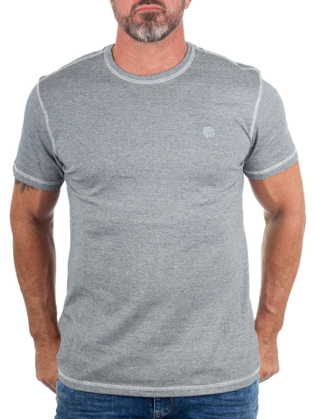 Nowoczesna i swobodna koszulka wykonana z miękkiej bawełny. Ozdobiona kontrastowymi szwami wzdłuż krawędzi i na ramionach, co nadaje jej sportowego charakteru. Subtelne logo na piersi dopełnia stylowego wyglądu – idealna na co dzień i czas wolny.