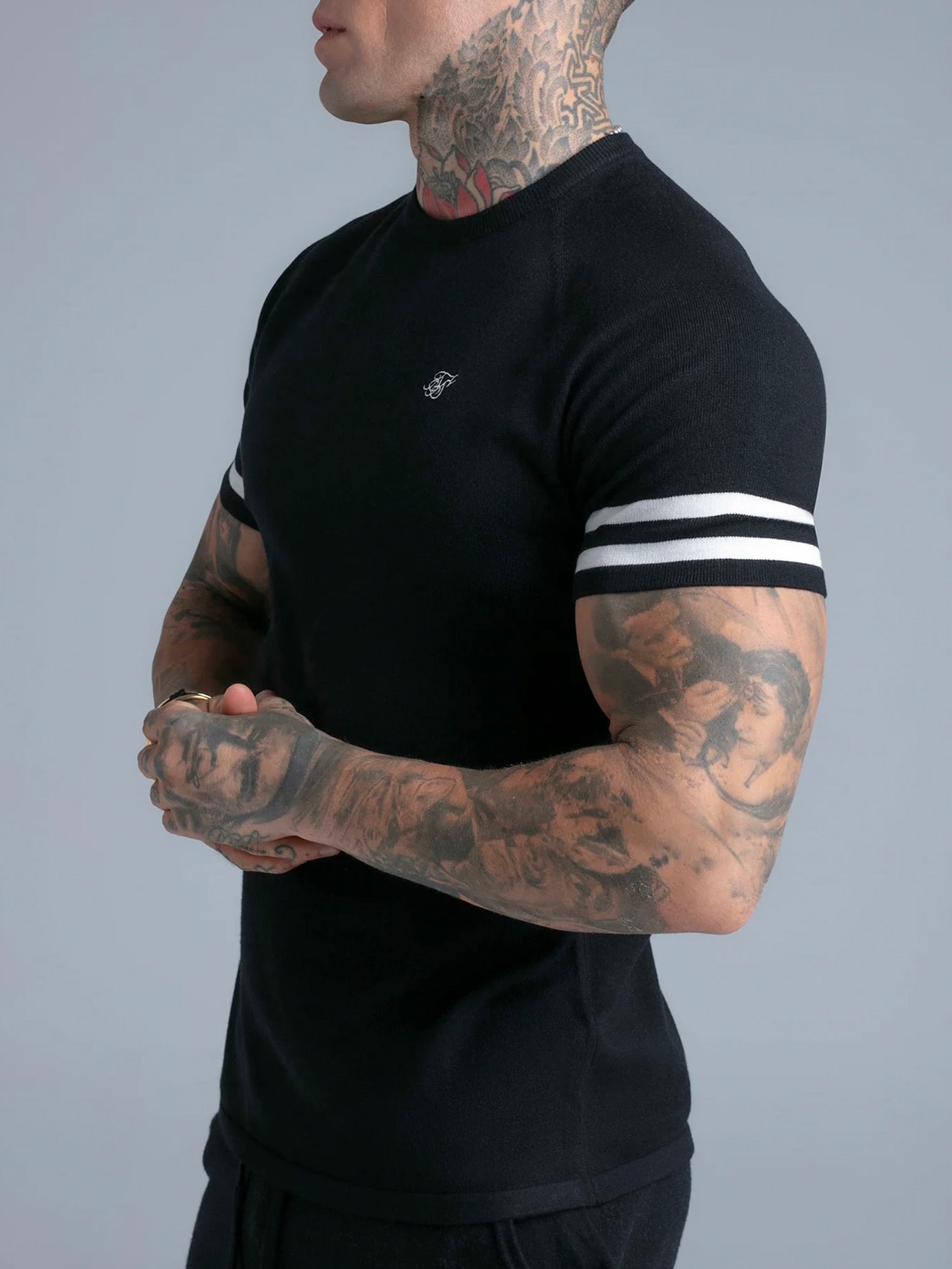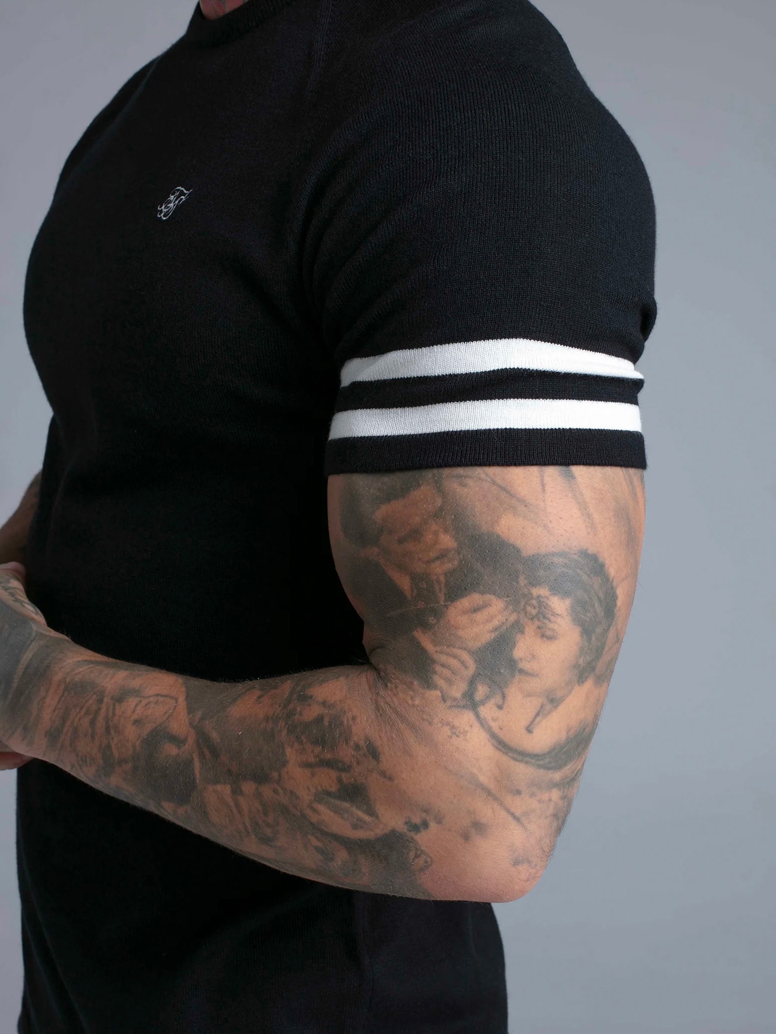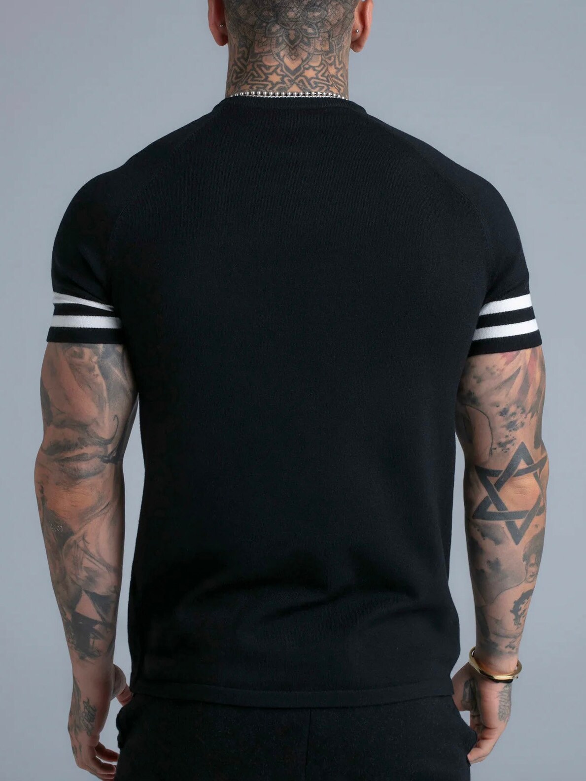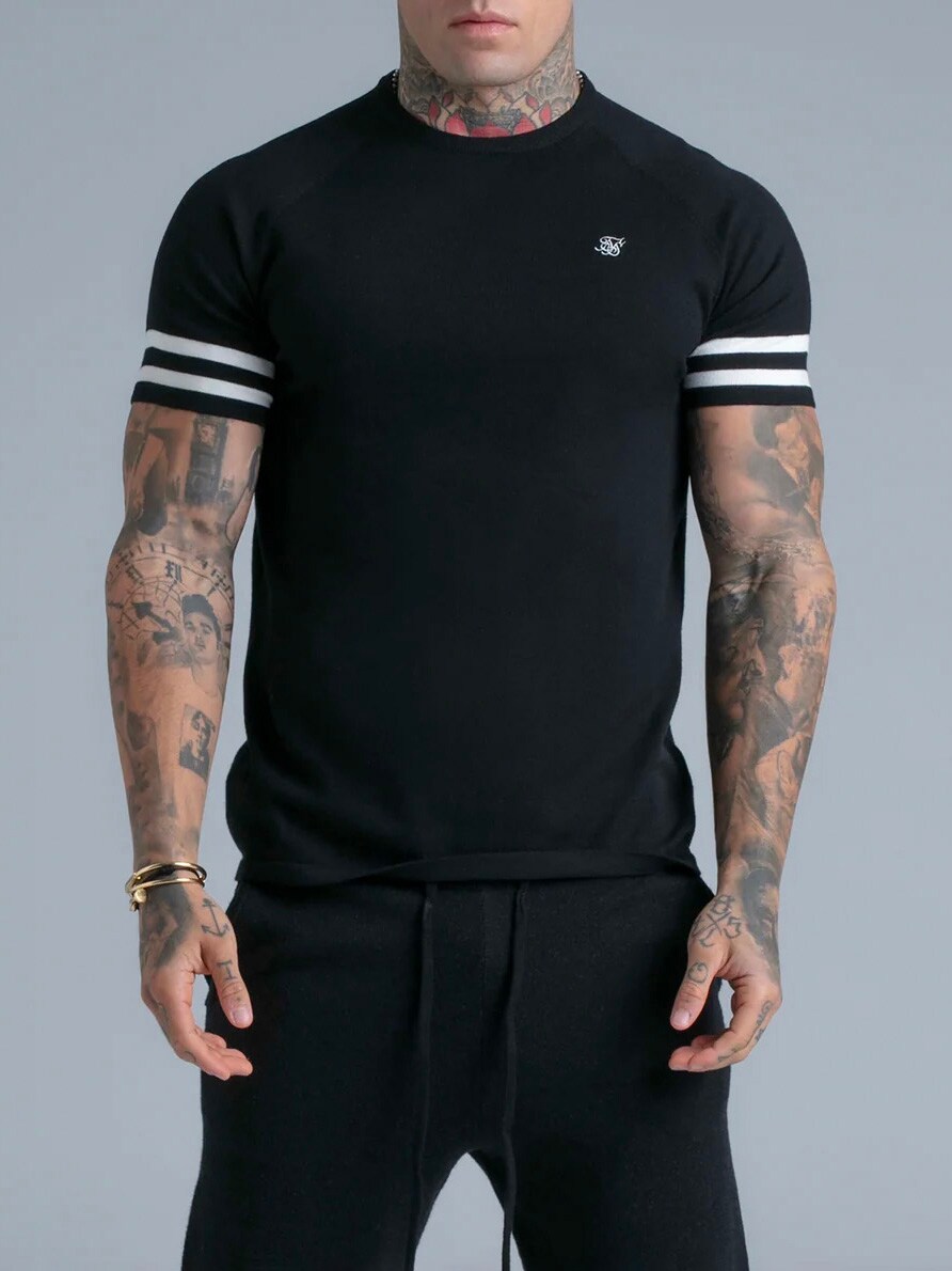 Jednokolorowa koszulka z logo na piersi i paskami na rękawach. Klasyczny okrągły dekolt i krótkie rękawy nadają jej ponadczasowy wygląd. Wykonana z miękkiego i elastycznego materiału.