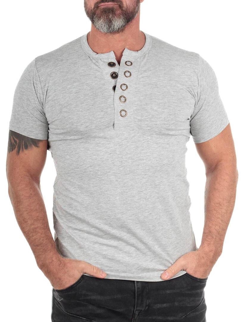 Przedstawiamy nasz własny t-shirt o ponadczasowym kroju. Posiada zapięcie na guziki z przodu. Wykonany jest w z miękkiej i wygodnej bawełny, która zapewnia uczucie przytulności przez cały dzień. Jest idealny zarówno do noszenia na co dzień, jak i na swobodne okazje.
