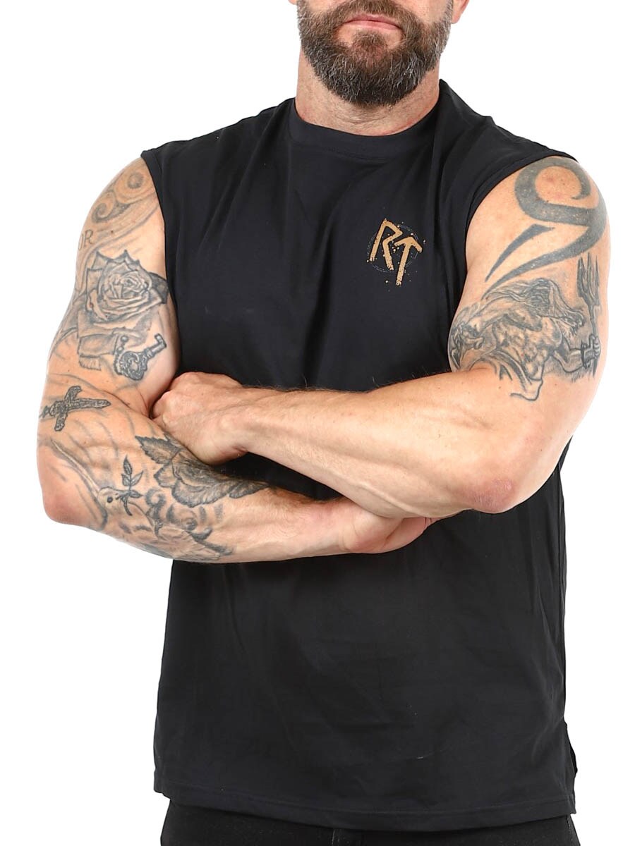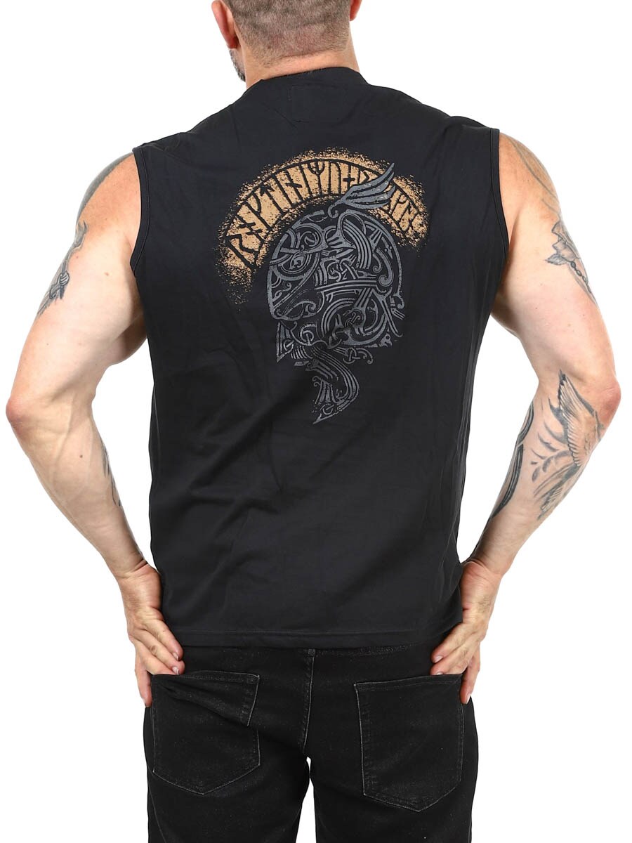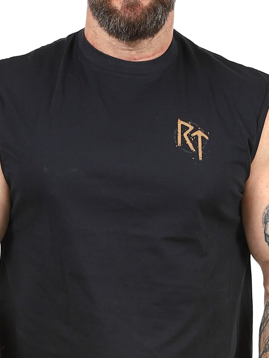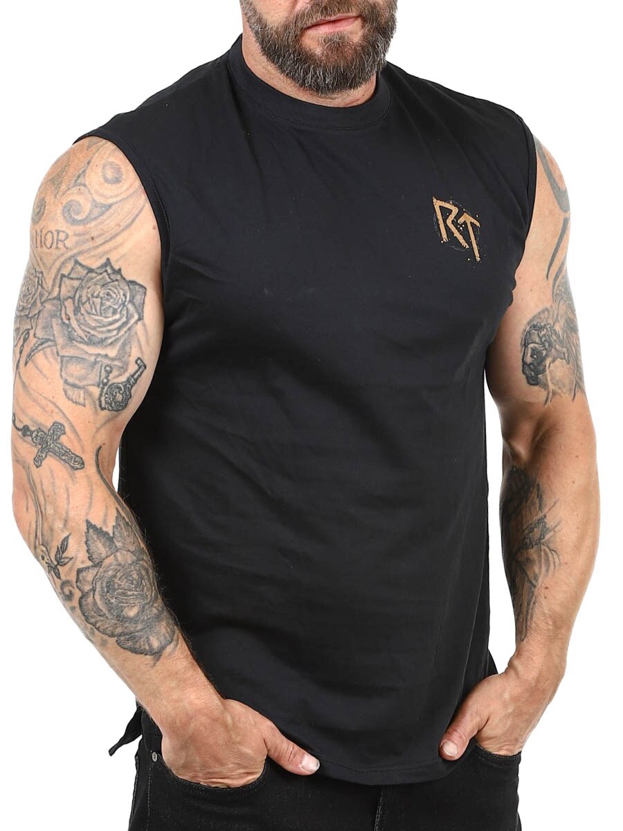 Ta czarna koszulka bez rękawów łączy w sobie prostotę i charakter. Duży nadruk na plecach stanowi mocny akcent, a mniejszy nadruk z przodu na piersi dodaje subtelny, ale wyraźny detal, który dopełnia całość. Koszulka ma zaokrąglony dekolt i krótkie rozcięcie u dołu. Dostępna wyłącznie w Rockdenim!