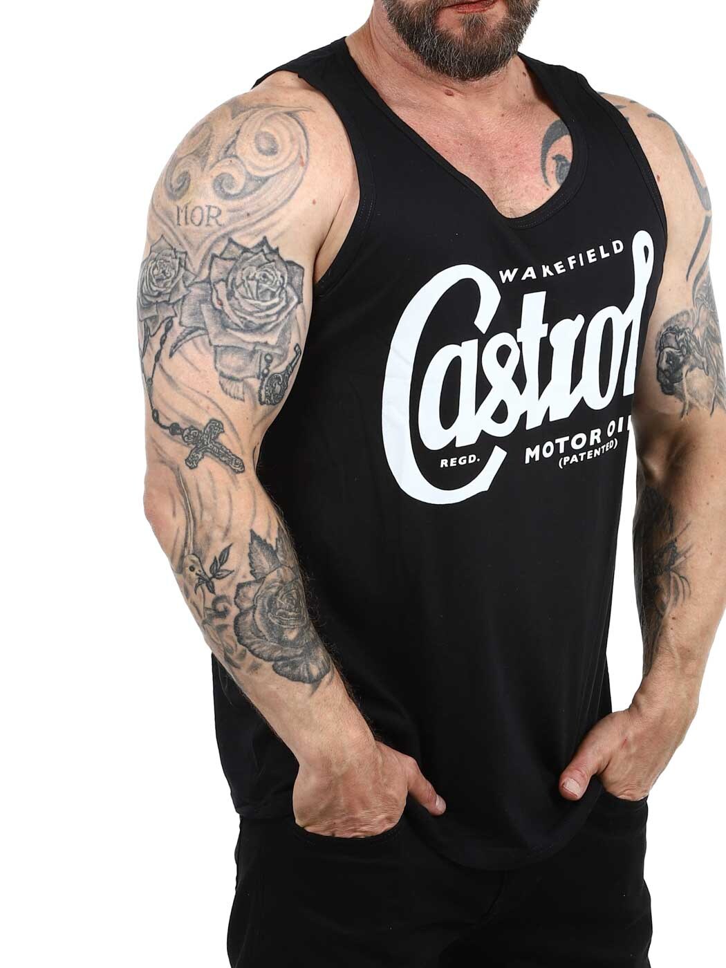 Ta czarna koszulka bez rękawów z klasycznym nadrukiem Castrol Motor Oil to pozycja obowiązkowa dla każdego, kto pasjonuje się stylem retro, wyścigami i kultowym designem. Stylowe białe logo na czarnym tle tworzy doskonały kontrast i nadaje koszulce autentyczny styl vintage. Idealna na ciepłe dni, treningi lub jako element codziennej stylizacji.