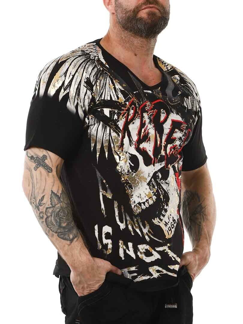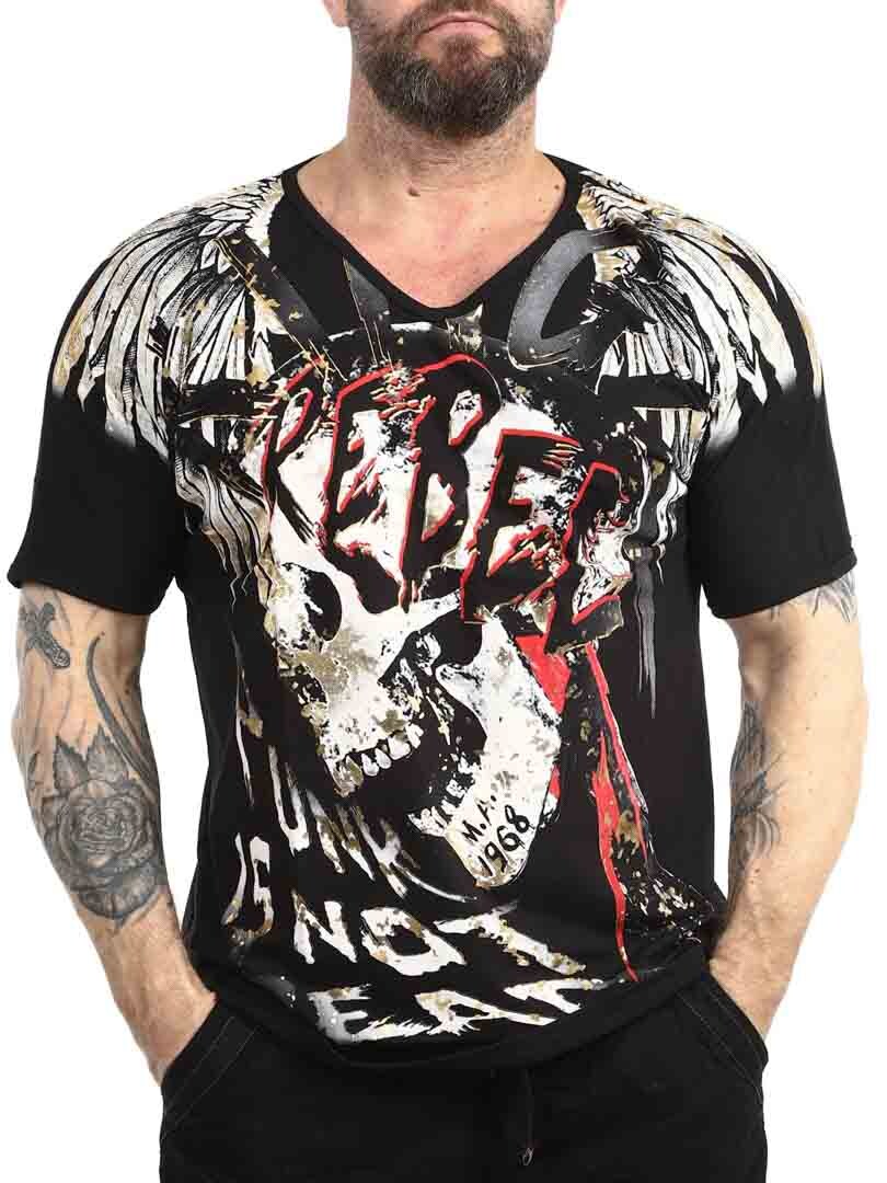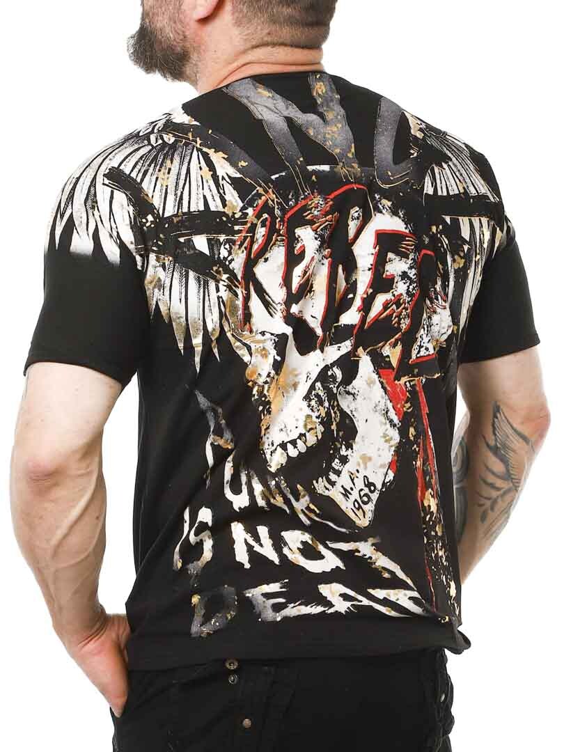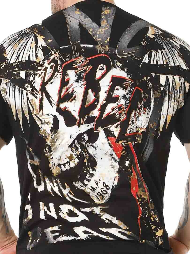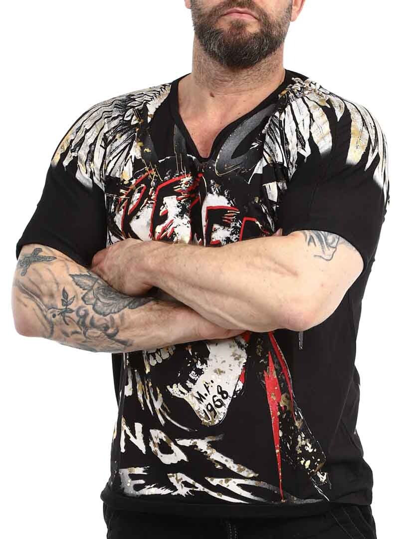 T-shirt ze szczegółowymi nadrukami z przodu i z tyłu. Ma dekolt w szpic i jest wykonany z miękkiego i elastycznego materiału. Dzięki tej koszulce na pewno przyciągniesz wzrok!