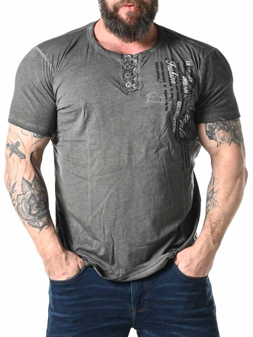 Ciekawa koszulka z miękkiej, elastycznej tkaniny. Przy szyi zapinana na guziki, na lewej piersi nadrukowany tekst w kolorze grafitowym. Stylowy wzór na ramieniu. Wyszywane logo w kolorze grafitowym na klatce piersiowej. Koszulka dostępna w wielu kolorach!