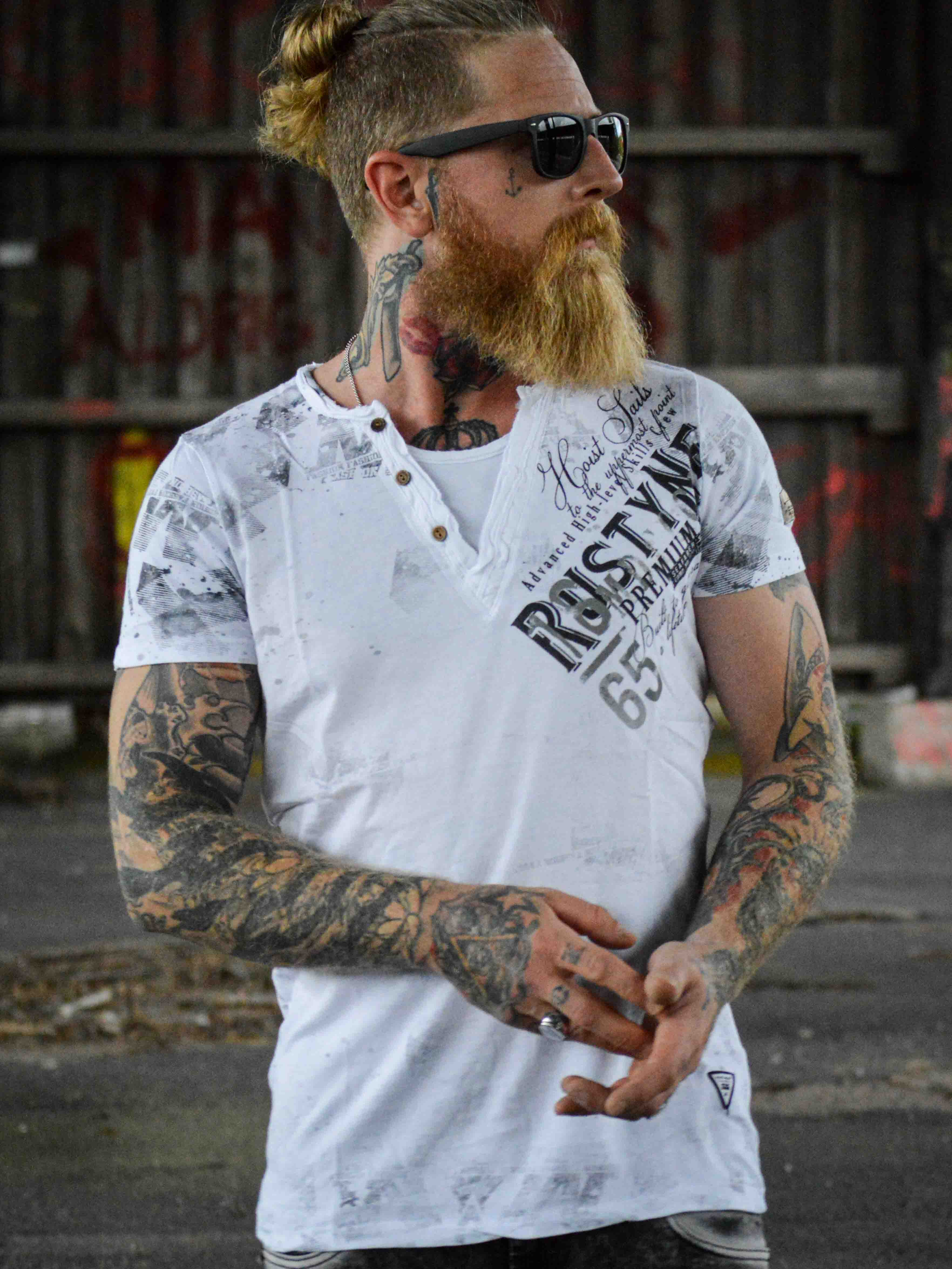 Efektowny T-shirt z guzikami od Rusty Neal
