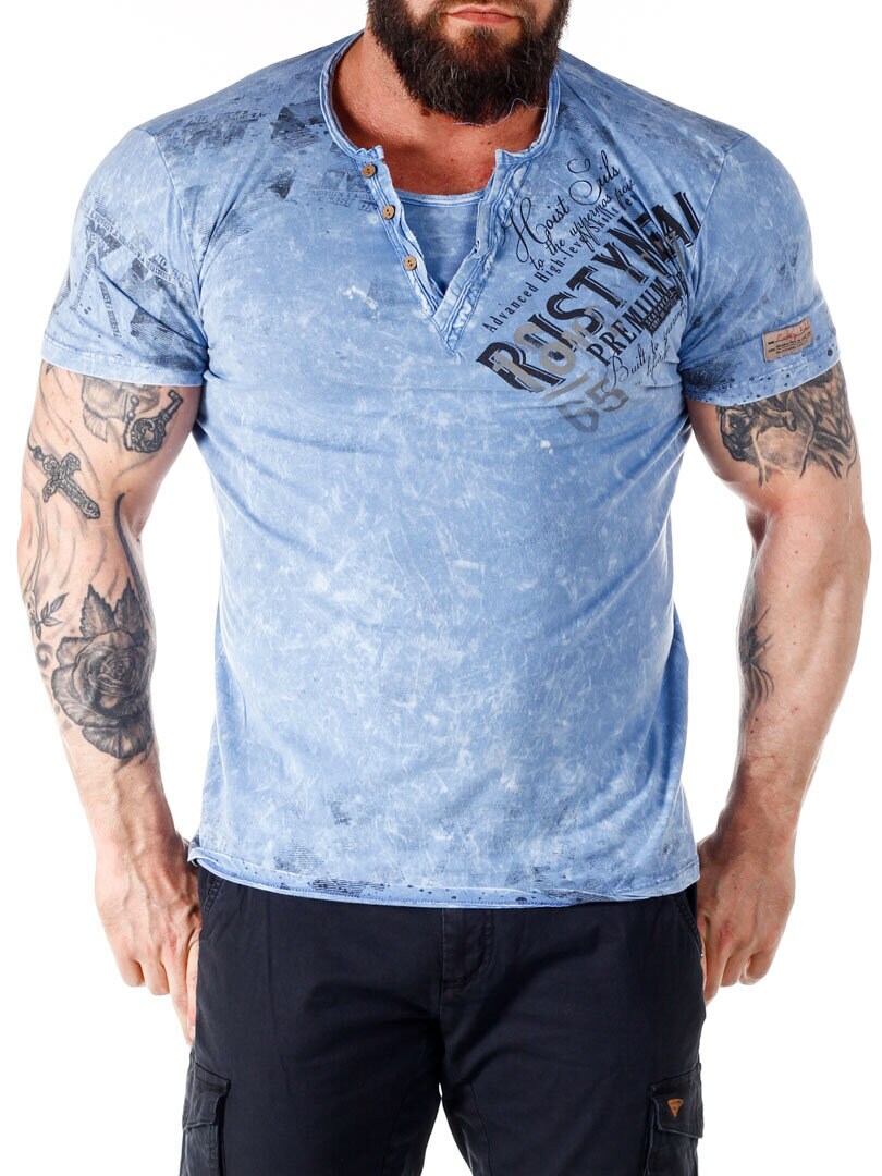 Efektowny T-shirt z guzikami od Rusty Neal