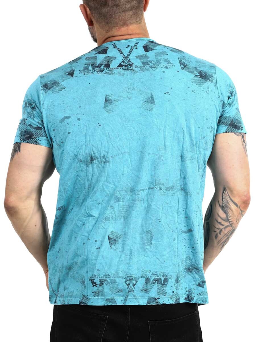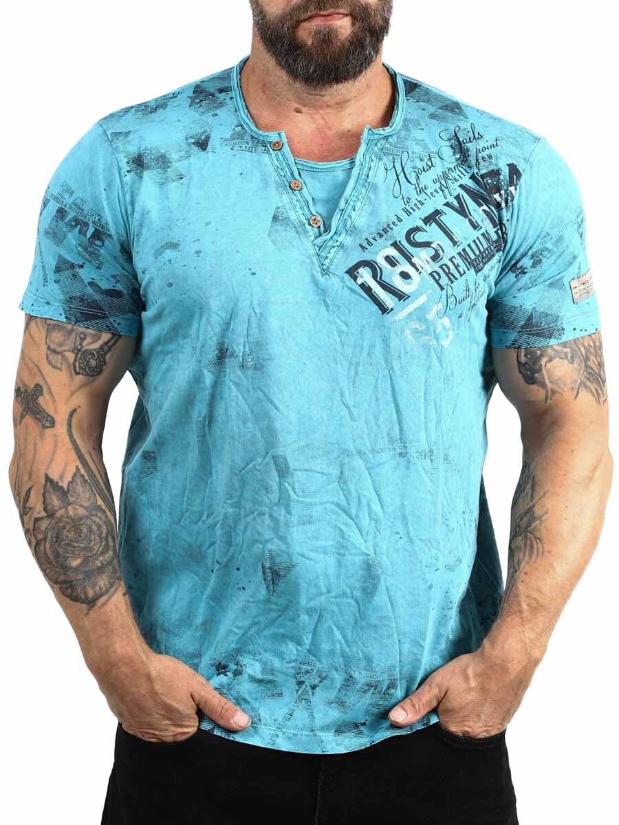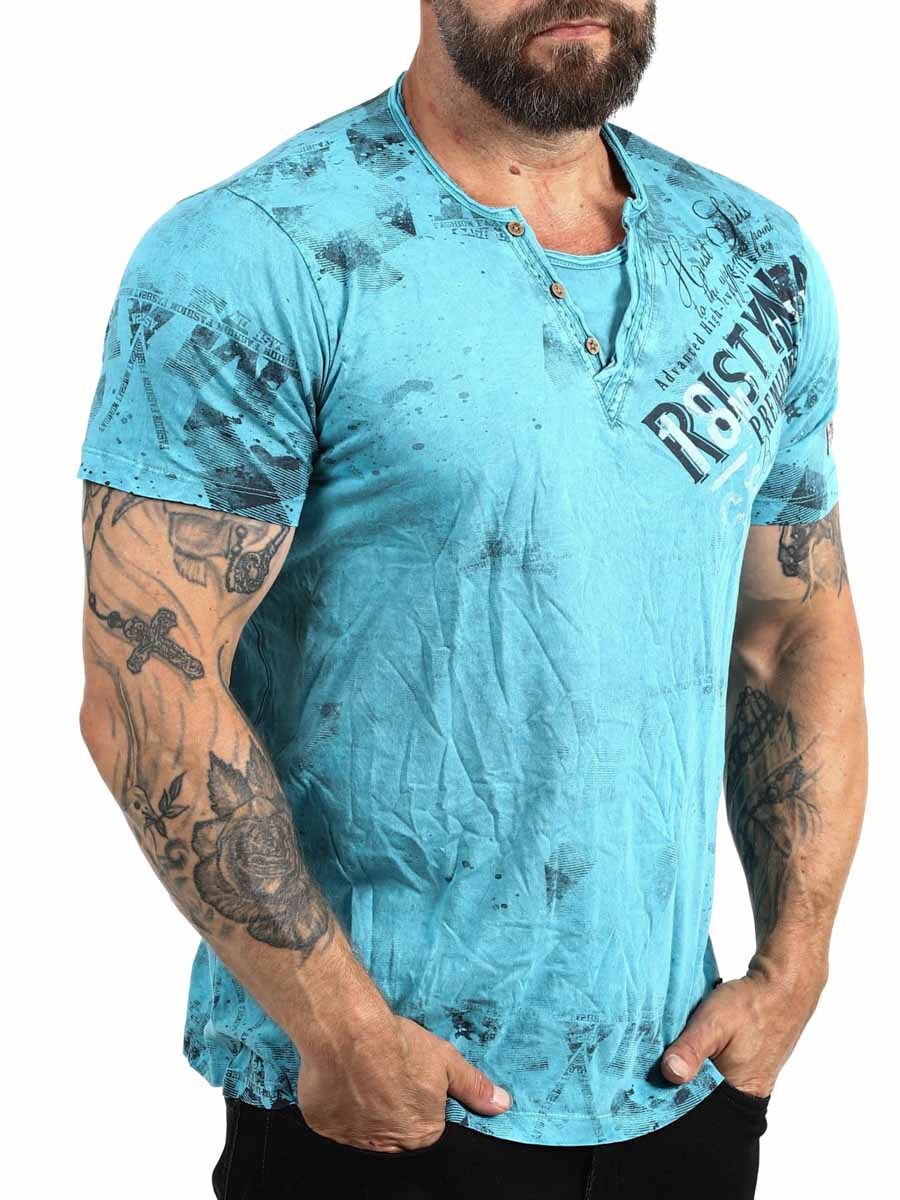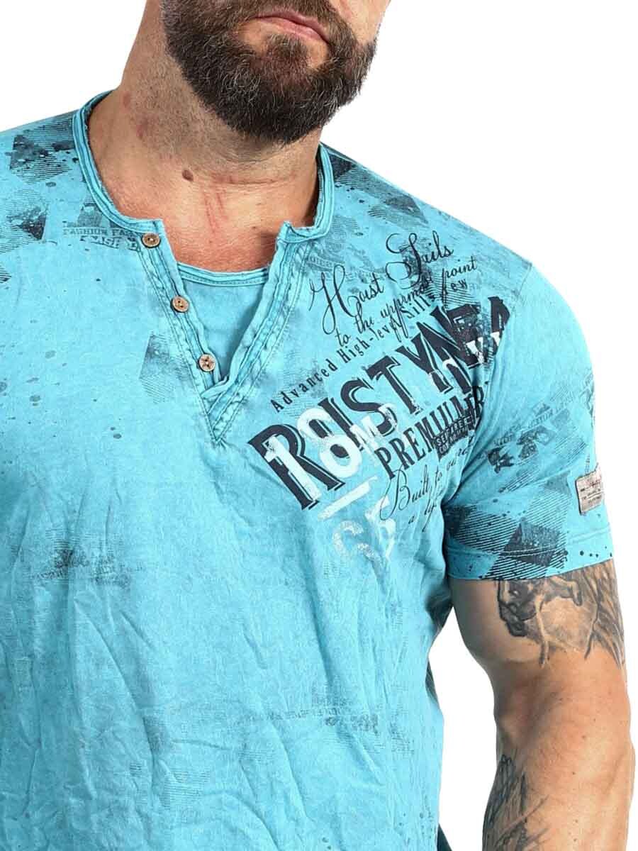Czarna koszulka z jasnymi wzorami i nadrukami tekstowymi w kolorze czarno-szarym. Posiada ciekawe detale w postaci guzików przy dekolcie oraz naszywek z logo na lewym rękawie i na dole. Uszyta z miękkiej i rozciągliwej bawełny, dzięki czemu świetnie układa sie na ciele!
