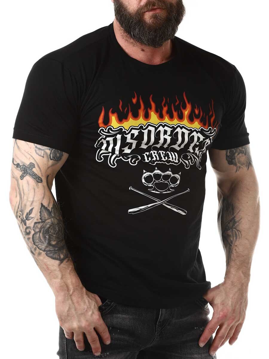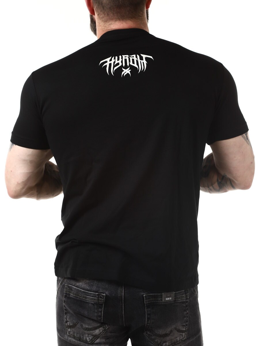 Czarny t-shirt zaprojektowany z "płonącym" nadrukiem na piersi, a także nadrukiem logo na karku. Ma zaokrąglony dekolt i klasyczny krój. Wykonane w 100% z bawełny.