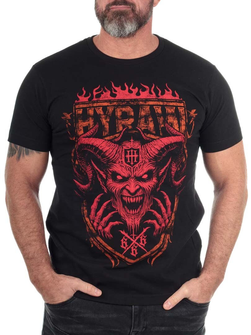 Hyraw Team Satan T-shirt w kolorze czarnym to odważny element zimowej kolekcji 2025 z mrocznym, artystycznym nadrukiem wykonanym we Francji.