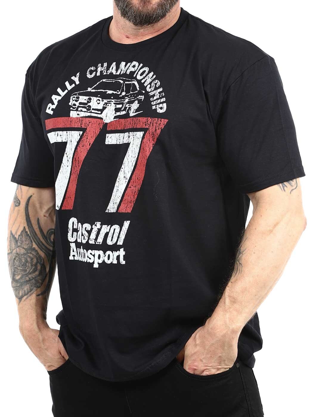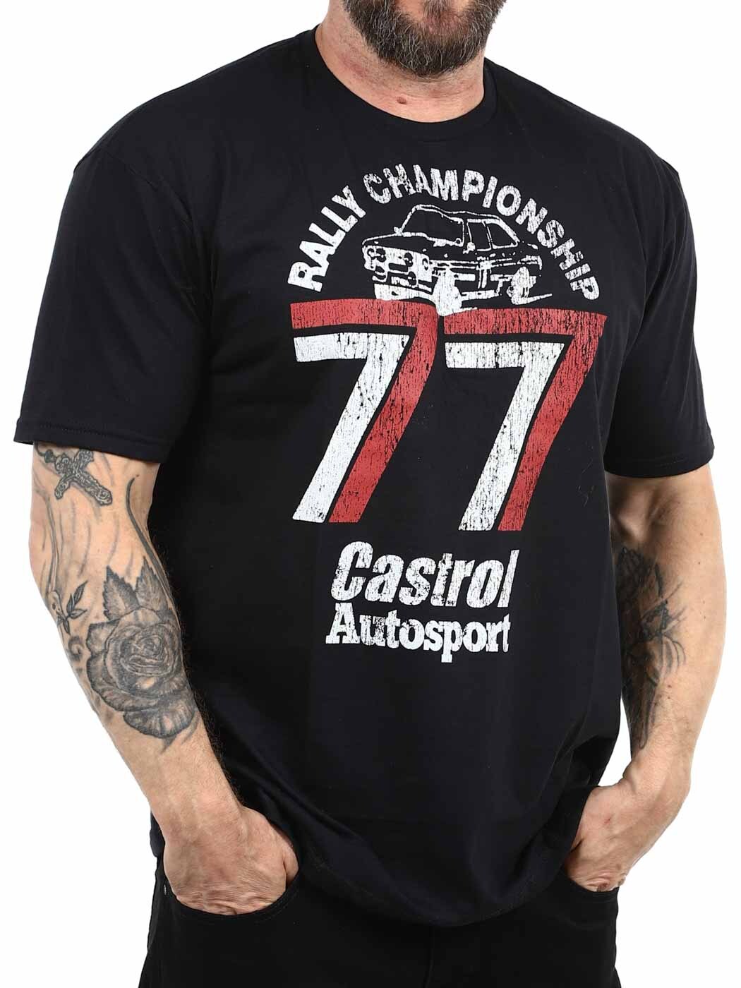 Pokaż swoją pasję do sportów motorowych dzięki tej koszulce inspirowanej stylem retro. Czarna koszulka ma duży nadruk z przodu z napisami „Rally Championship 77” i „Castrol Autosport”, uzupełniony klasycznym samochodem rajdowym w stylu vintage. Idealna dla miłośników motoryzacji i fanów streetwearu, którzy chcą nosić koszulkę łączącą styl i historię.