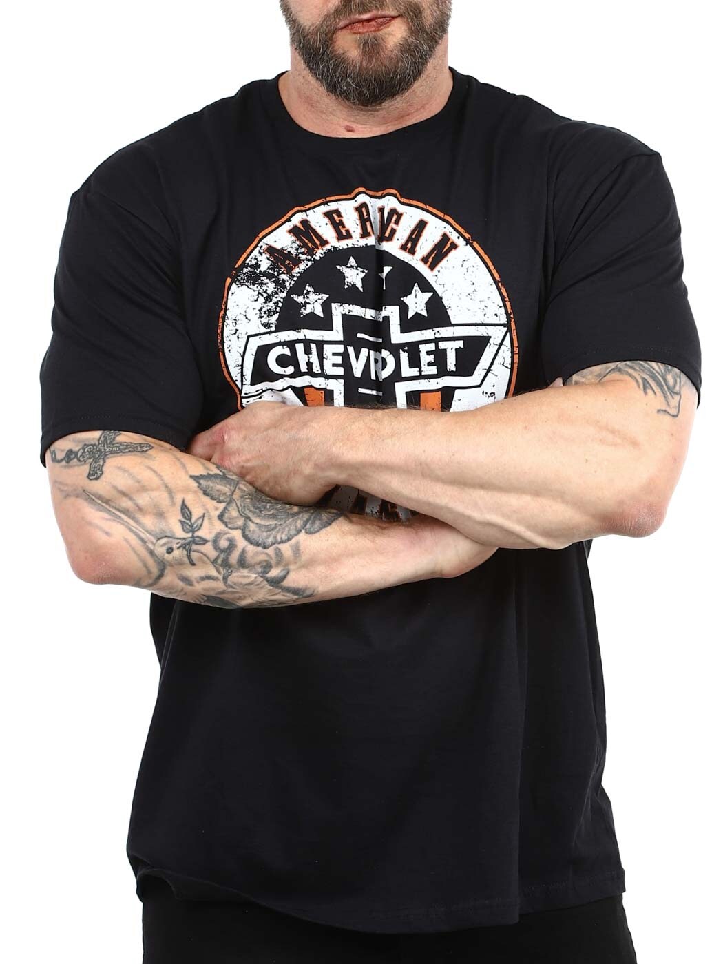 Czarny t-shirt celebrujący historię amerykańskiej motoryzacji. Wykonany z miękkiej bawełny o klasycznym kroju zapewniającym wygodę na co dzień. Idealny na spotkania motoryzacyjne, przejażdżki lub jako swobodny element codziennej stylizacji!
