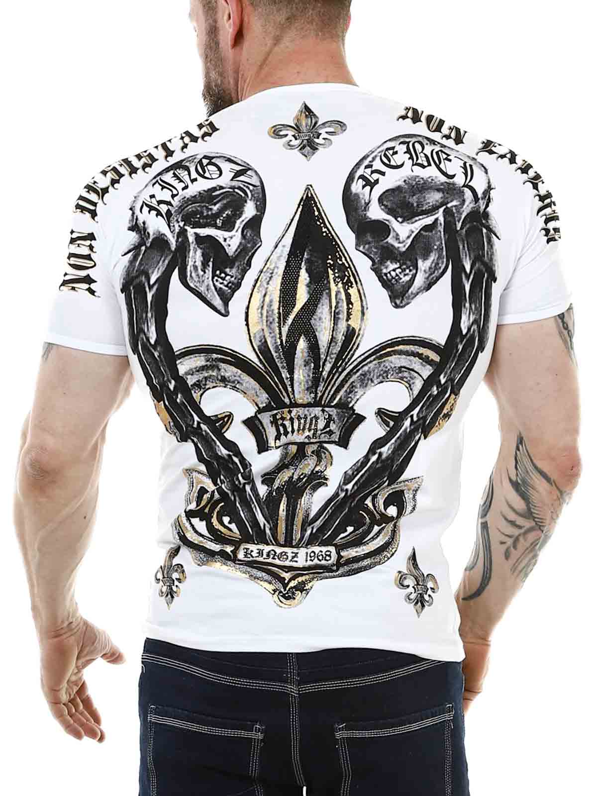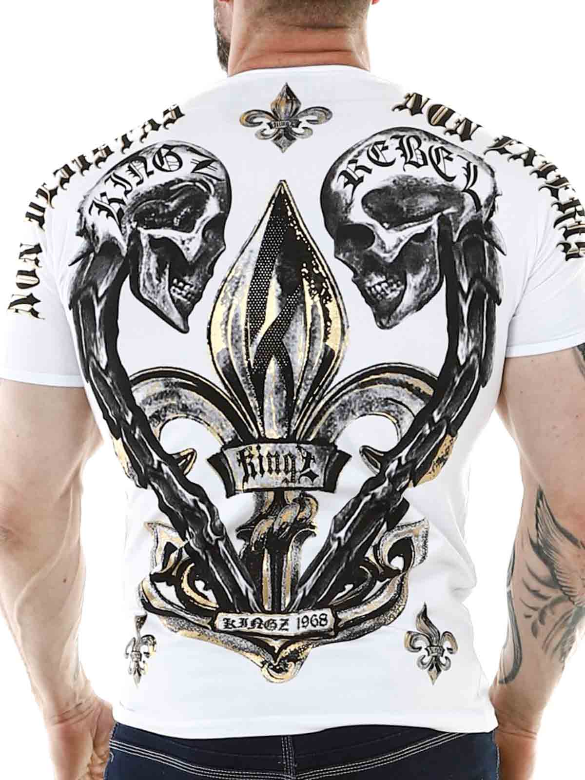 T-shirt z dekoltem w serek z nadrukiem i ozdobnymi kamieniami. Wykonana z wygodnej bawełny o dopasowanym kroju. Ta stylowa koszulka jest dla osób, które chcą wyróżnić się z tłumu!