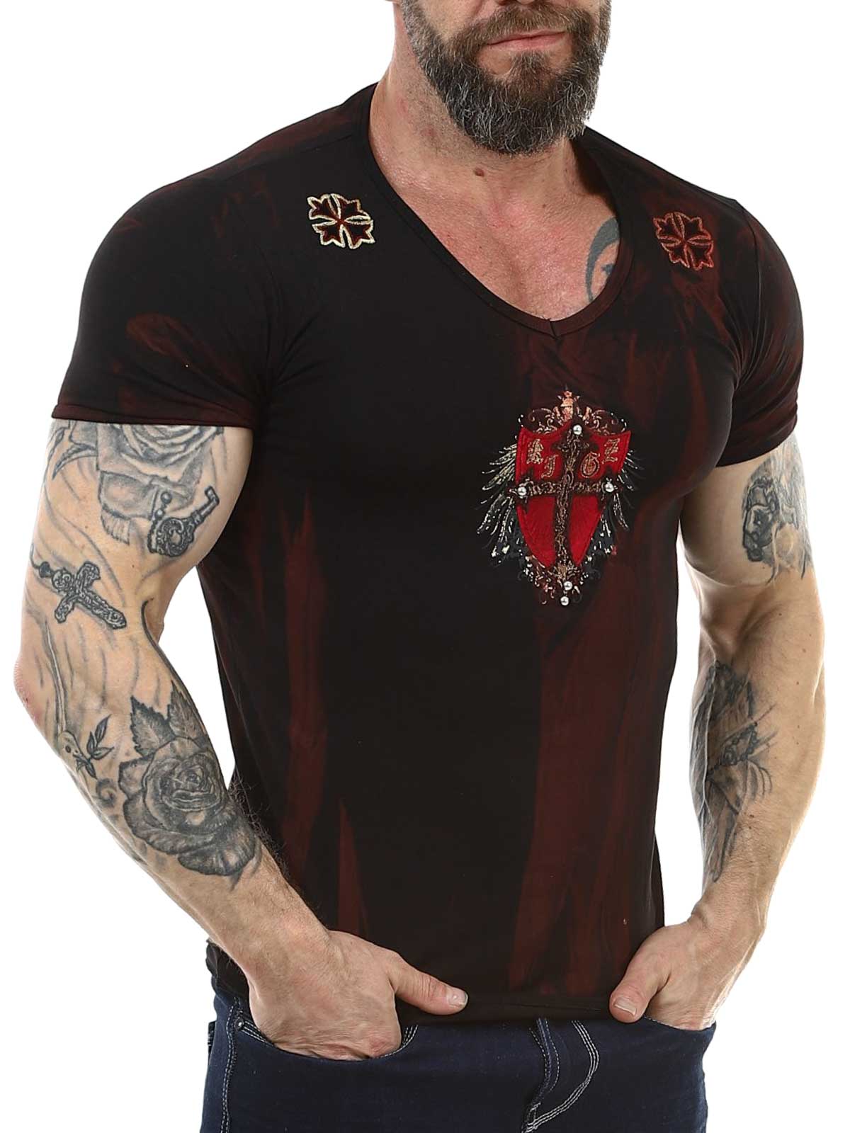 T-shirt zaprojektowany tak, aby wyróżniać się i robić wrażenie. Czarna baza została przełamana wyraźnym emblematem z przodu, który stanowi mocny detal, natomiast tył zdobi duży i szczegółowy nadruk przyciągający uwagę. Model ma dopasowany krój i został wykonany z wygodnej bawełny.