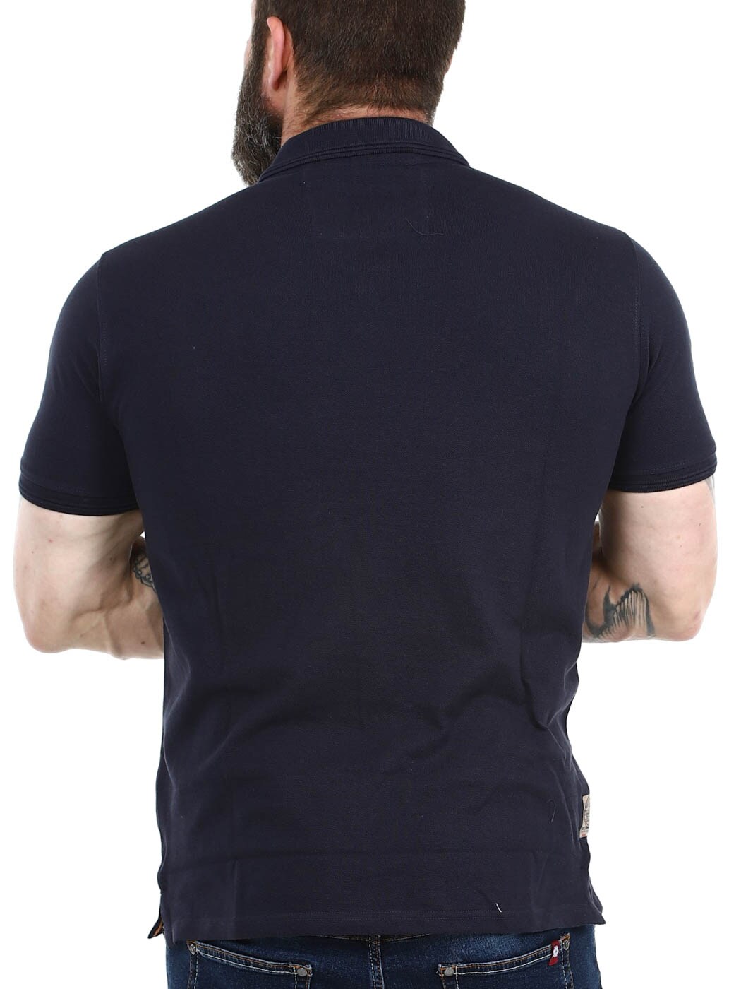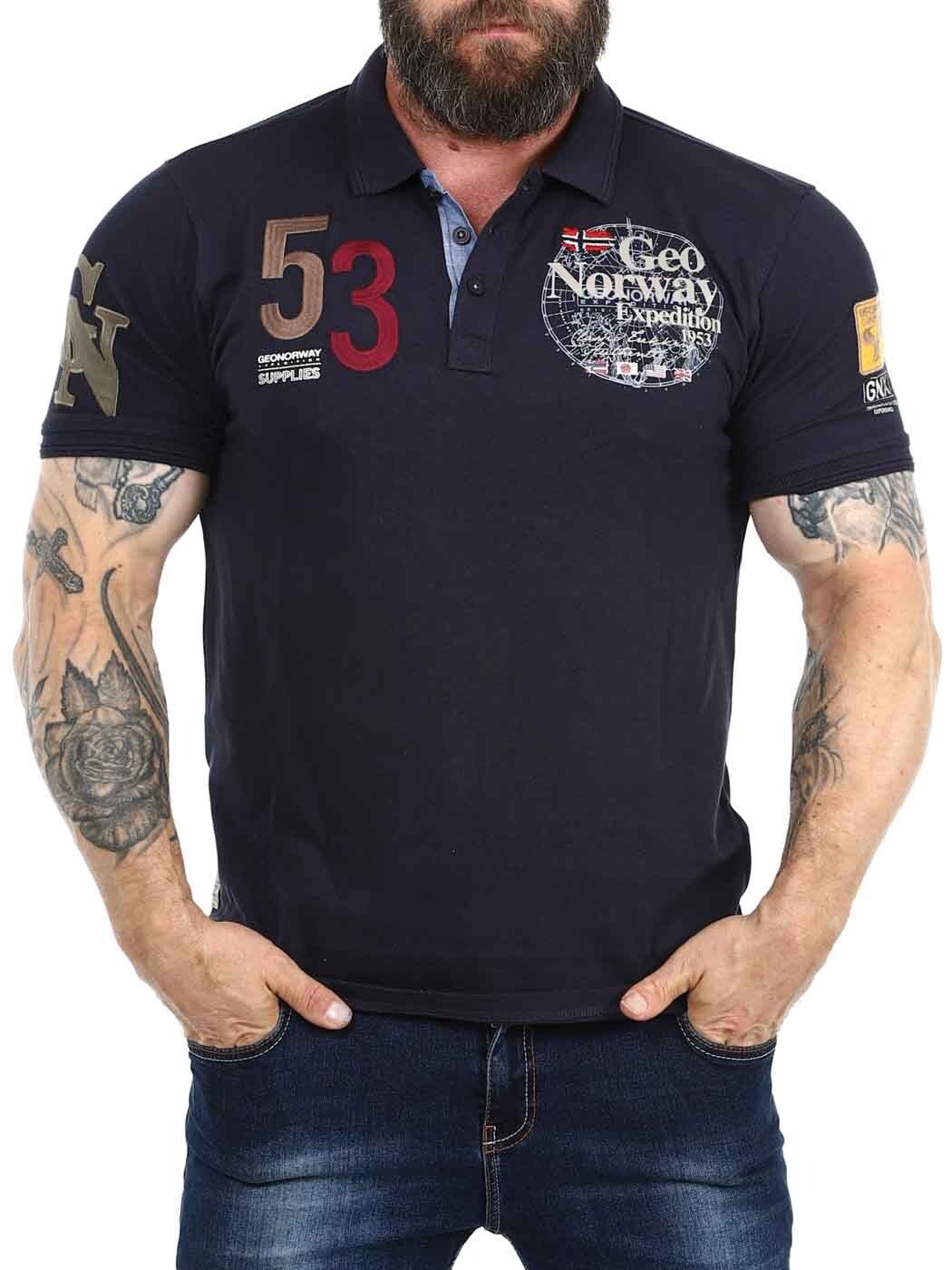 Koszulka polo z krótkim rękawem. Zdobienia w postaci nadruków, naszywek i logo. Posiada guziki pod szyją oraz krótkie rozcięcie po bokach u dołu. Prążkowany kołnierzyk i rękawy.