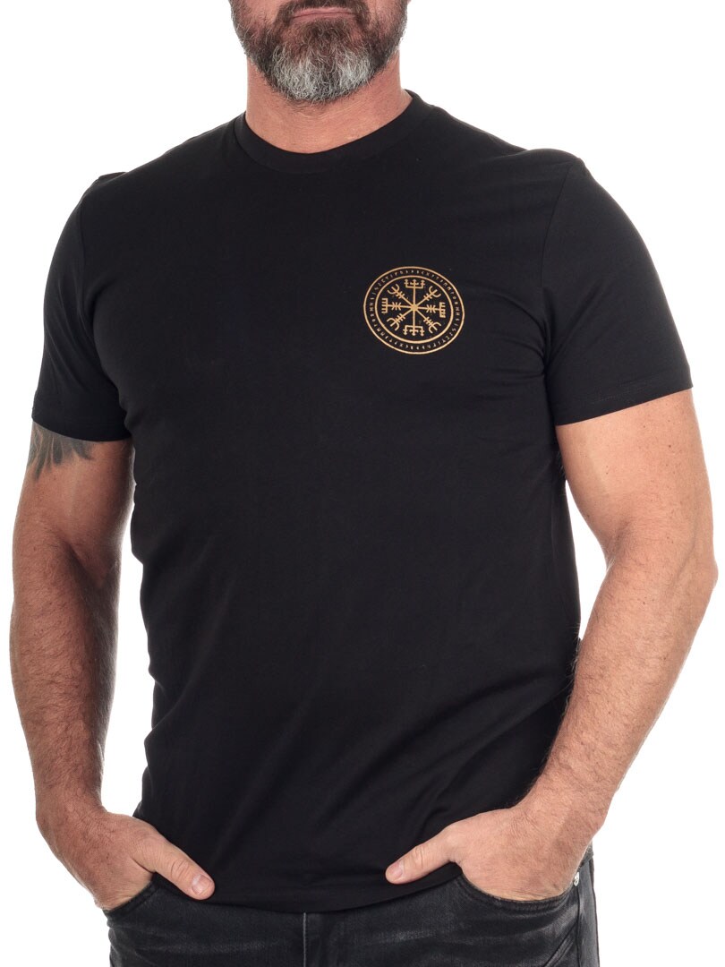 Ten t-shirt oferuje idealną równowagę między charakterem a stylem dzięki swojemu szczegółowemu wzornictwu. Tył zdominowany jest przez duży, przyciągający wzrok motyw przedstawiający Fenrisulvena i kompas runiczny, podczas gdy przód zdobi mniejszy, złoty symbol, zapewniając dyskretniejszy wygląd z przodu. Koszulka ma klasyczny krój i żebrowany, okrągły dekolt, co sprawia, że jest wygodna w noszeniu. Wykonana jest w 100% z bawełny i dostępna jest wyłącznie w RockDenim.