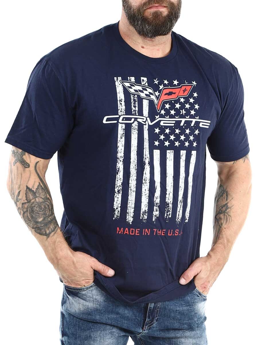 Koszulka z kultowym nadrukiem Corvette i stylizowaną amerykańską flagą. Wykonana z miękkiej, wytrzymałej bawełny, zapewniającej wygodne dopasowanie. Idealna dla miłośników motoryzacji, którzy chcą pokazać swoją pasję w dobrym stylu!