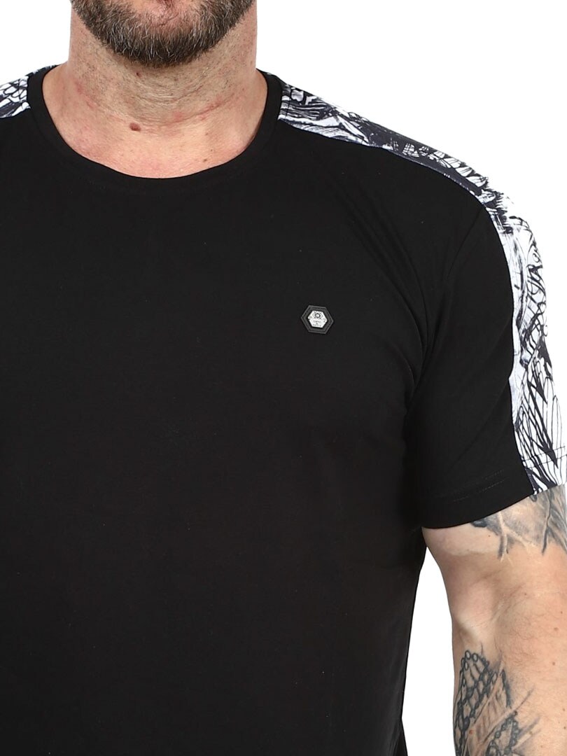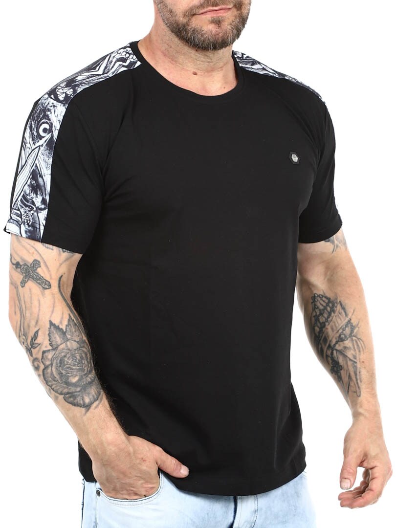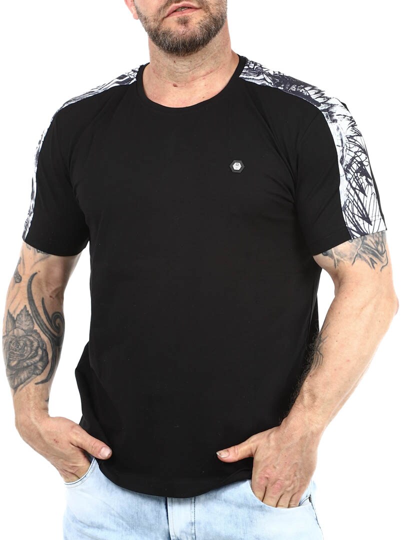 Stylowa koszulka z graficznym wzorem na ramionach, który nadaje jej ostrego charakteru. Ma klasyczny krój z okrągłym dekoltem. Wykonany z wygodnej i elastycznej mieszanki bawełny.
